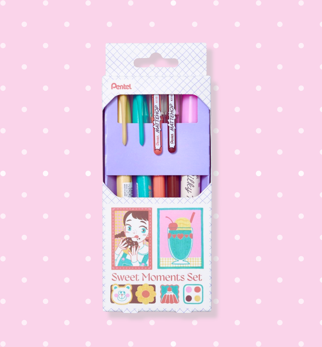 [Japan] Pentel Mattehop and Brush Pen Set [Sweet Moments]