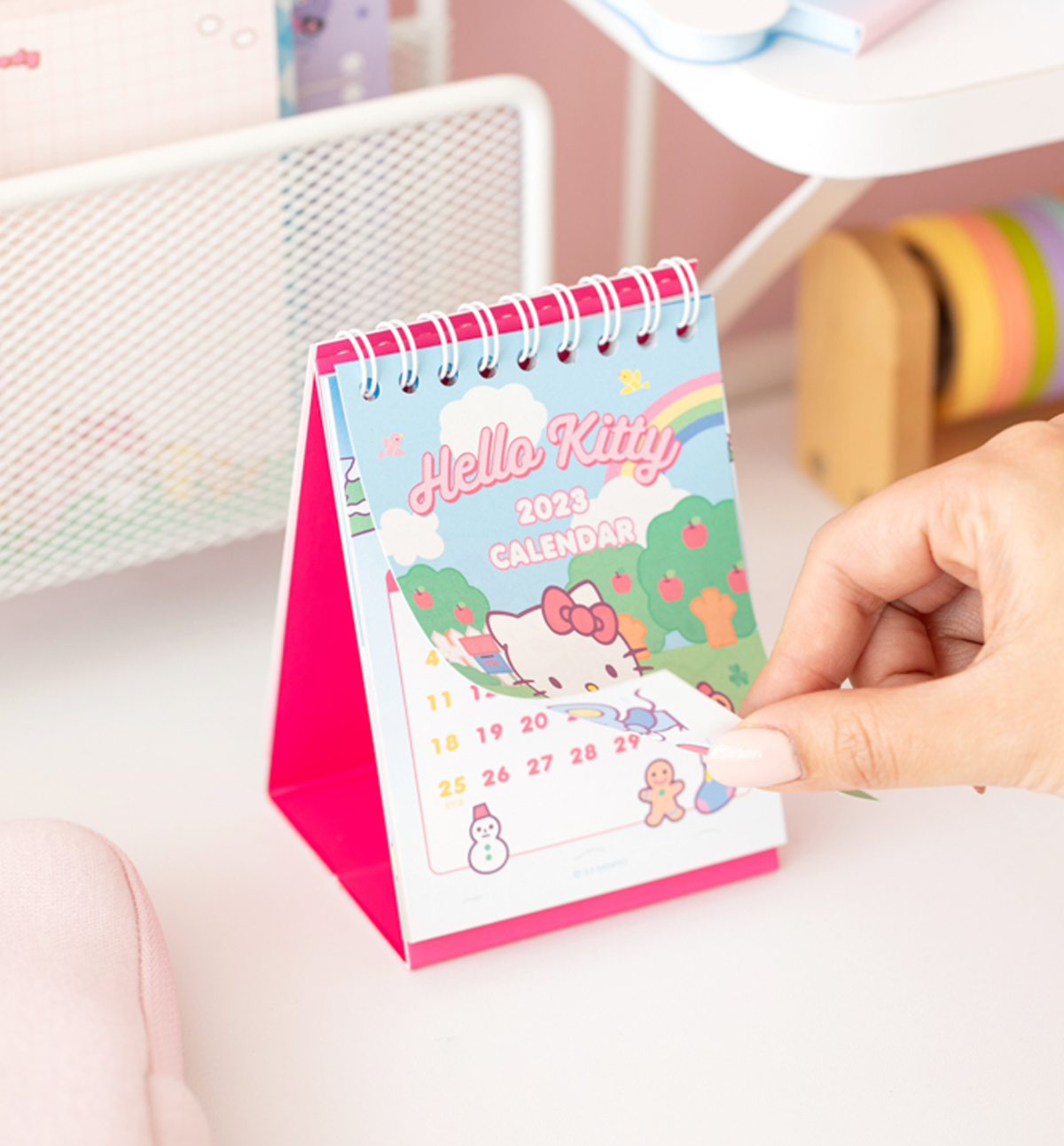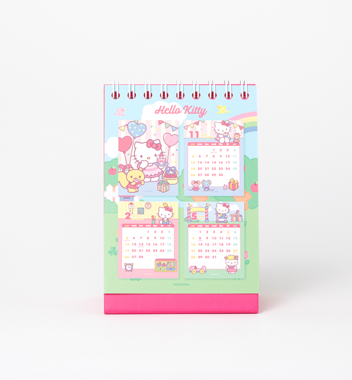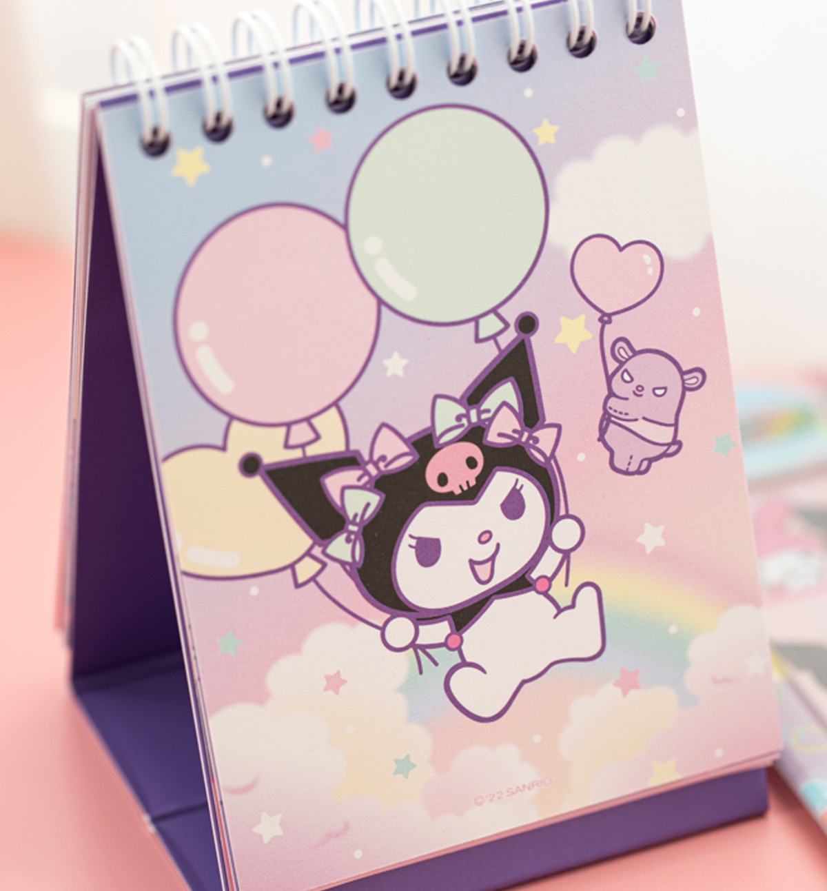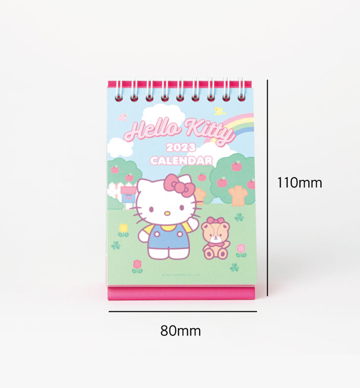 This beautiful 2023 Sanrio Mini Calendar Stand Still and Folds Flat. Ring Binding.