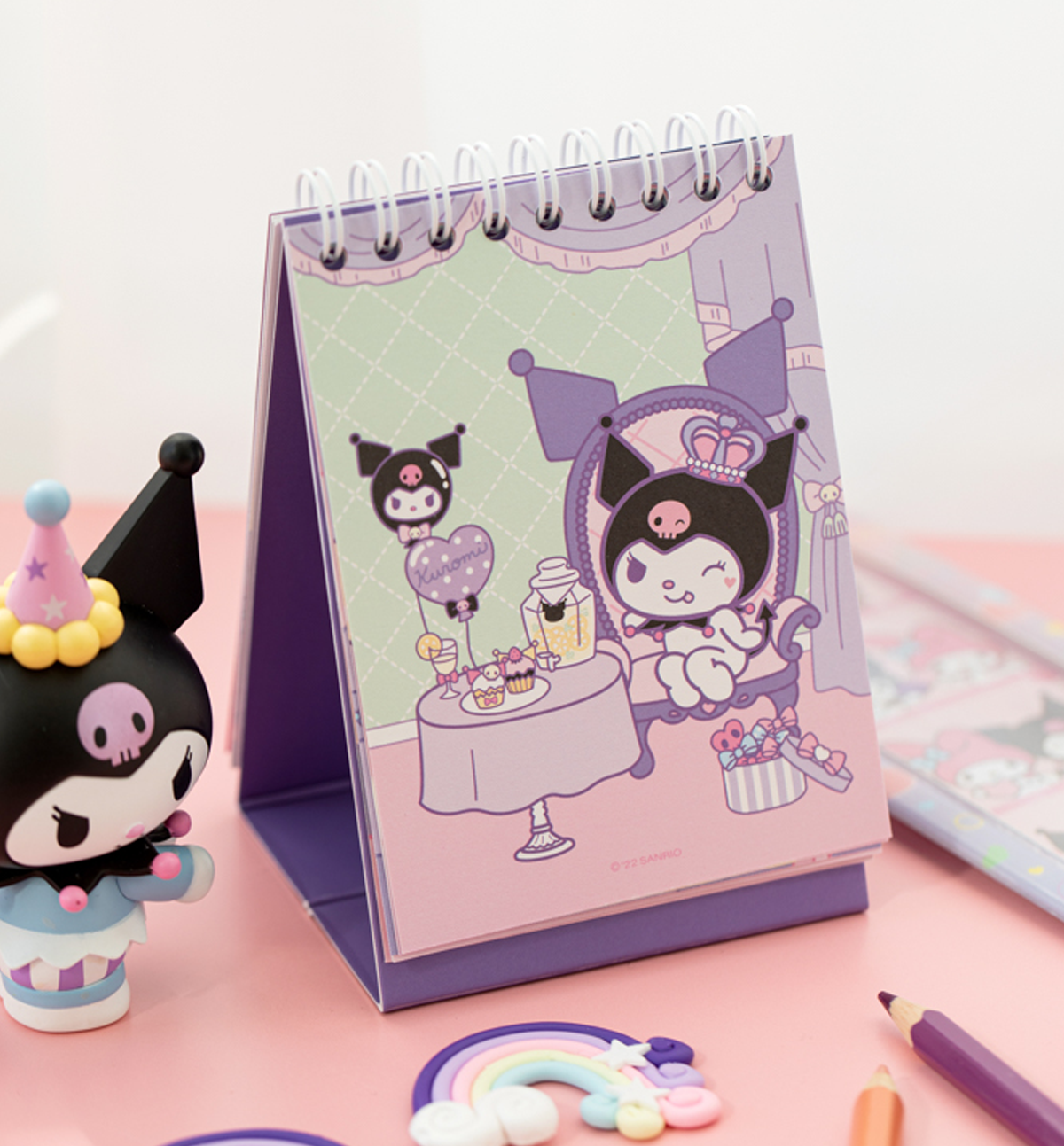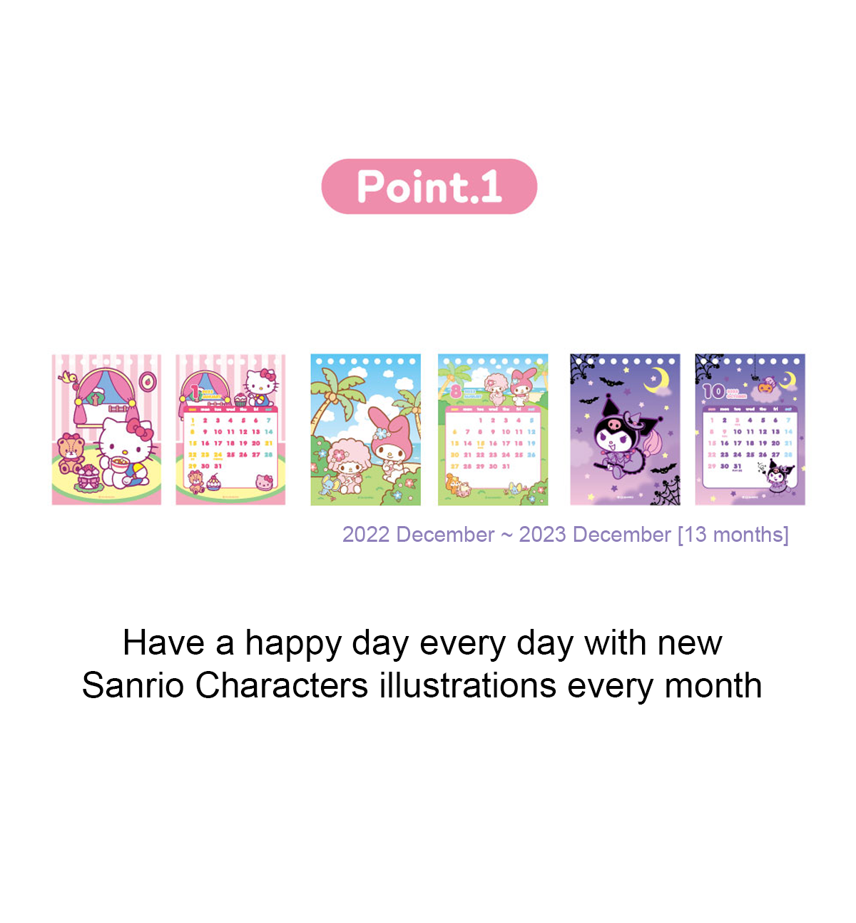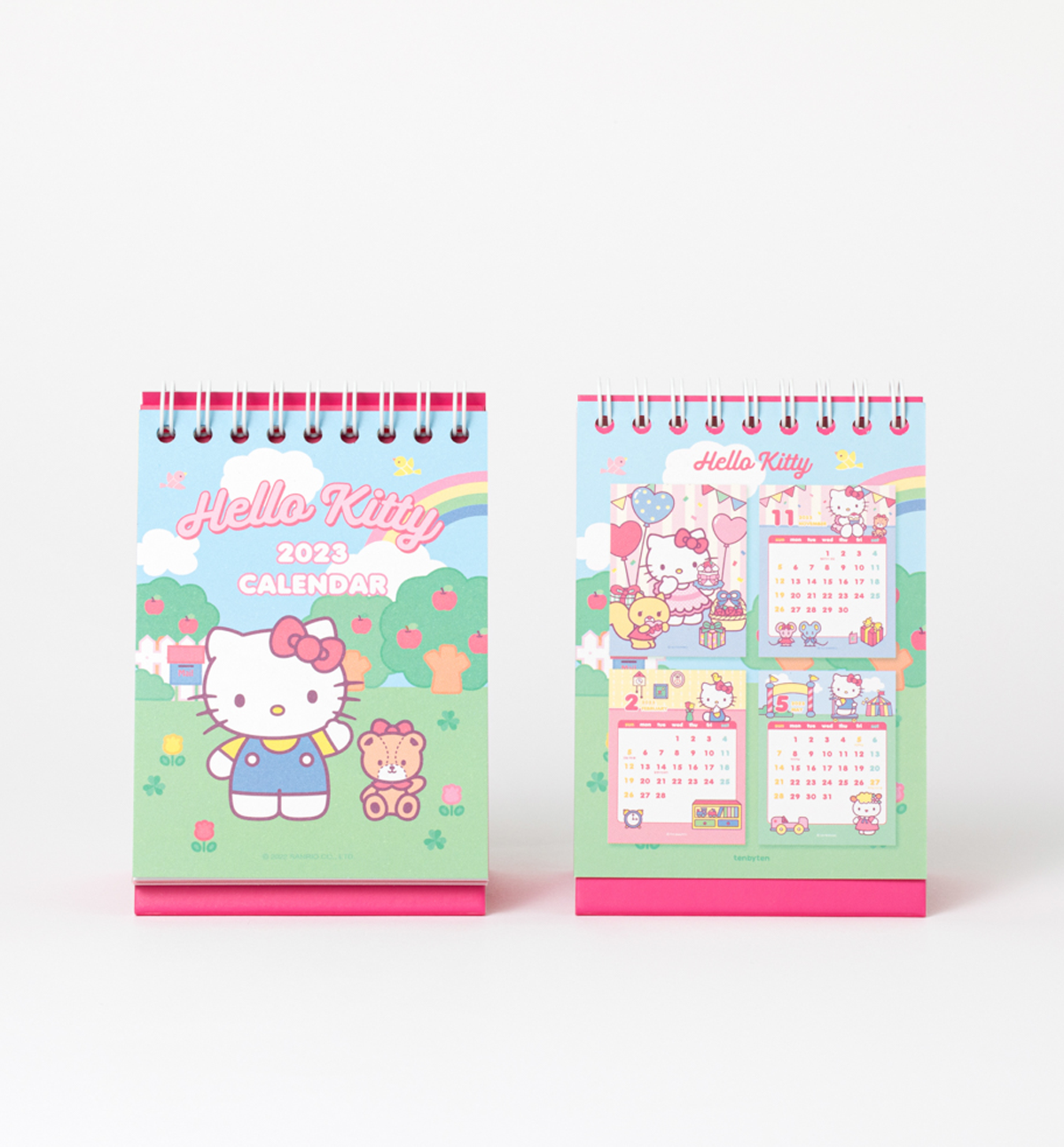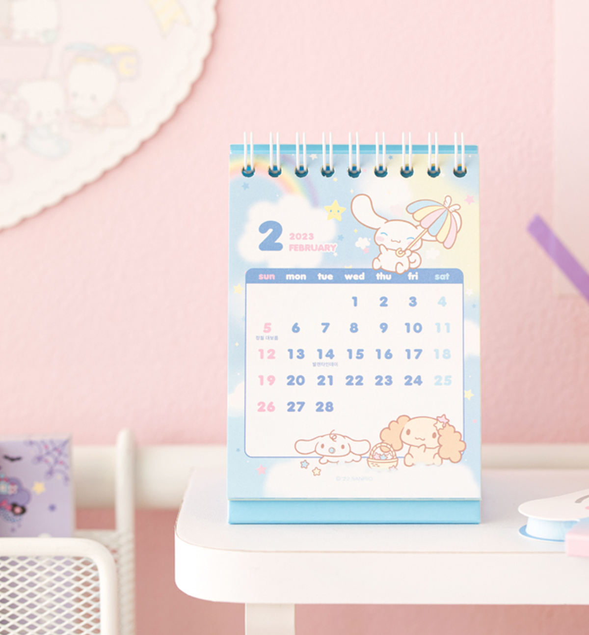 This beautiful 2023 Sanrio Mini Calendar Stand Still and Folds Flat. Ring Binding.