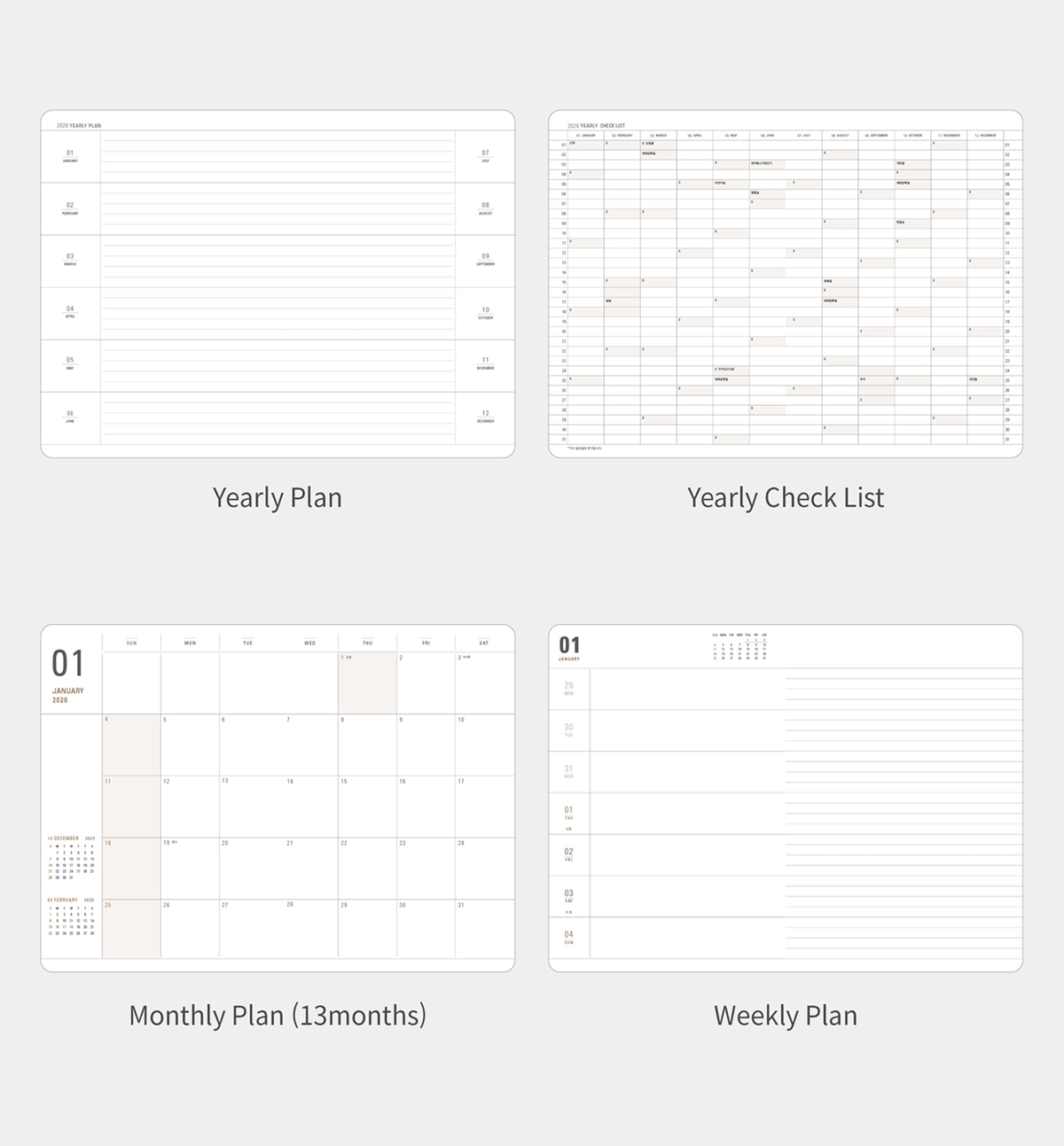 *Korean holidays are pre-marked throughout the calendar’s dated pages. But you can always add your personal holidays.