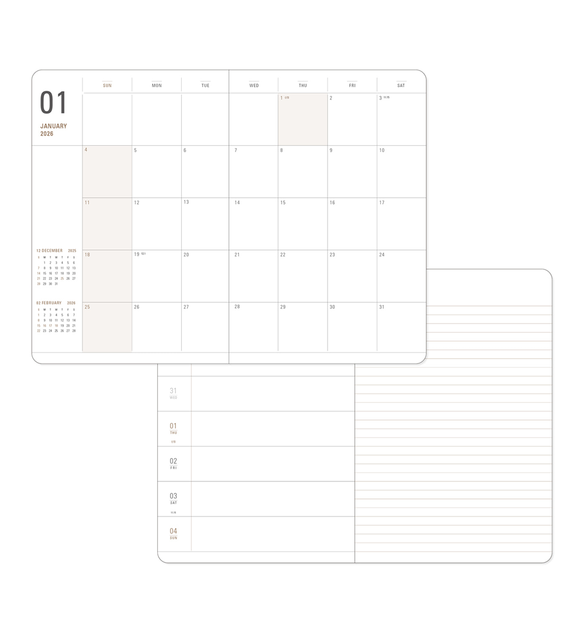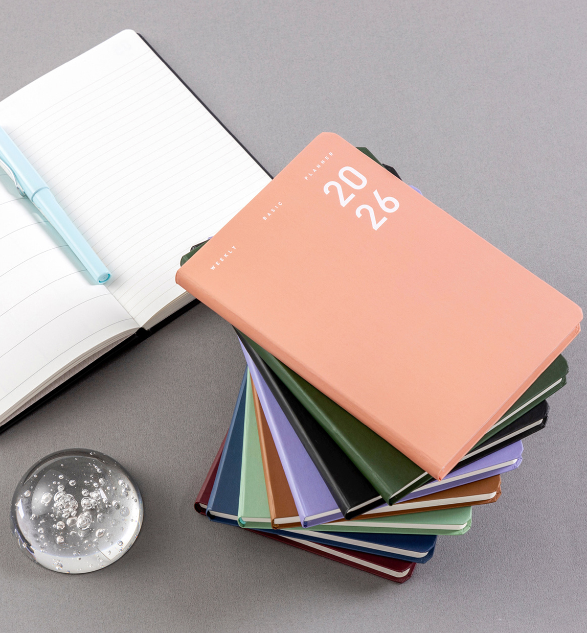 Stay organized in style with the 2026 Ardium Weekly Basic Planner. Designed for practicality and elegance, this planner features a 180-degree lay-flat, four-strand binding method for smooth writing comfort. Its simple yet refined coated hardcover ensures durability while maintaining a clean, minimal look.