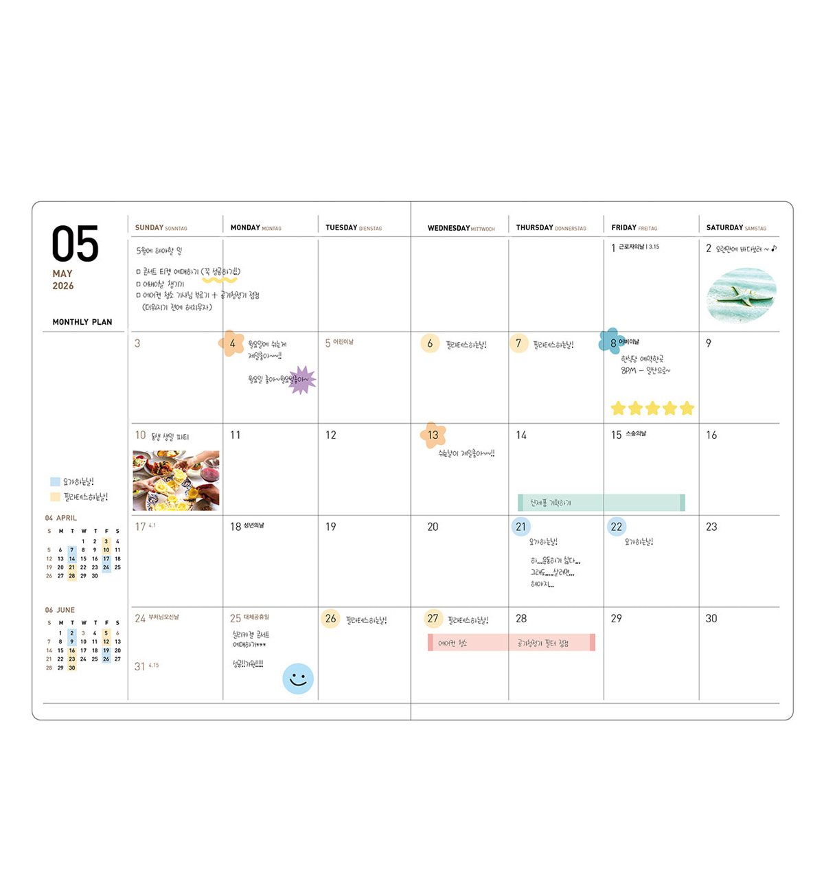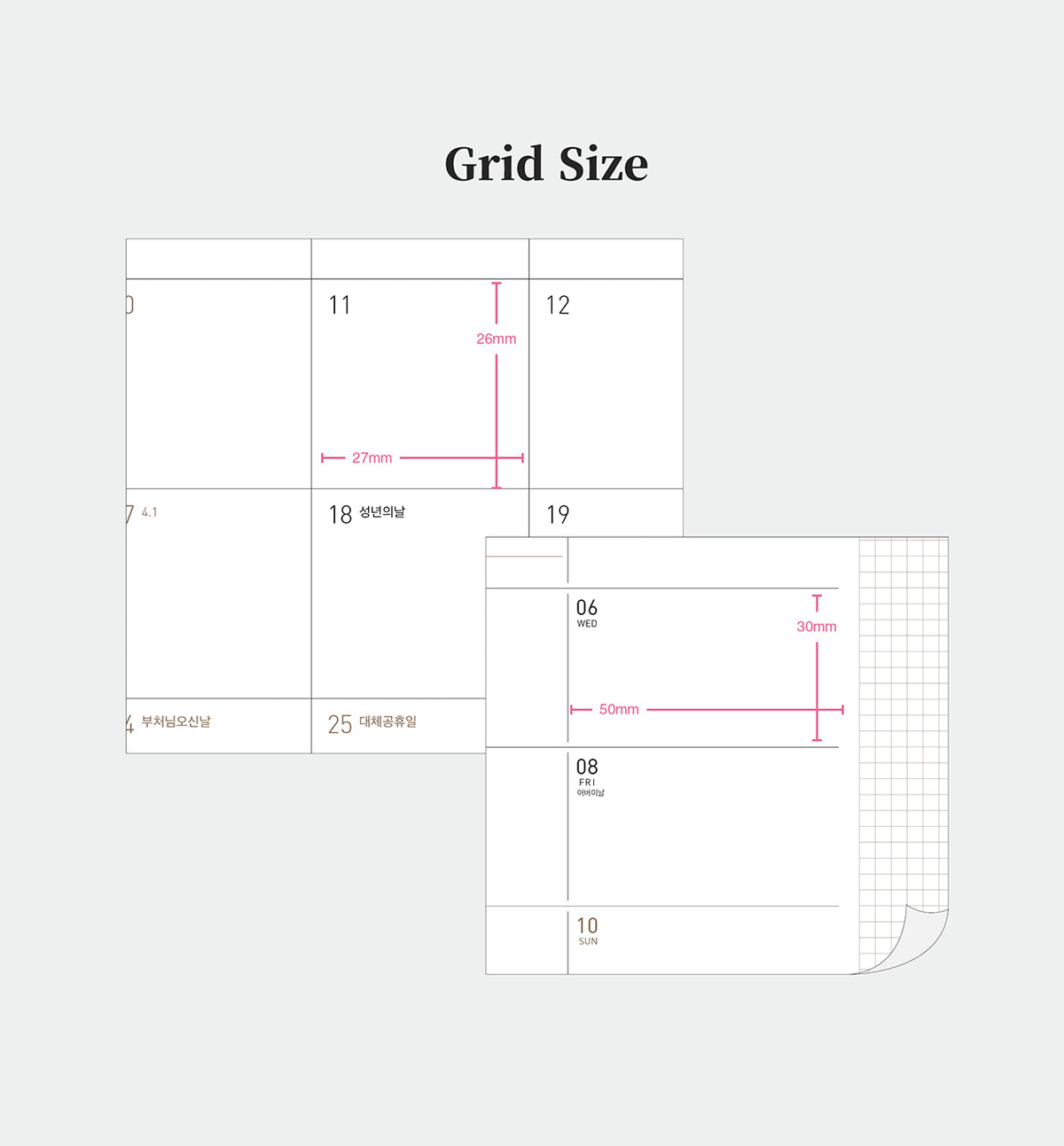 *Korean holidays are pre-marked throughout the calendar’s dated pages. But you can always add your personal holidays.