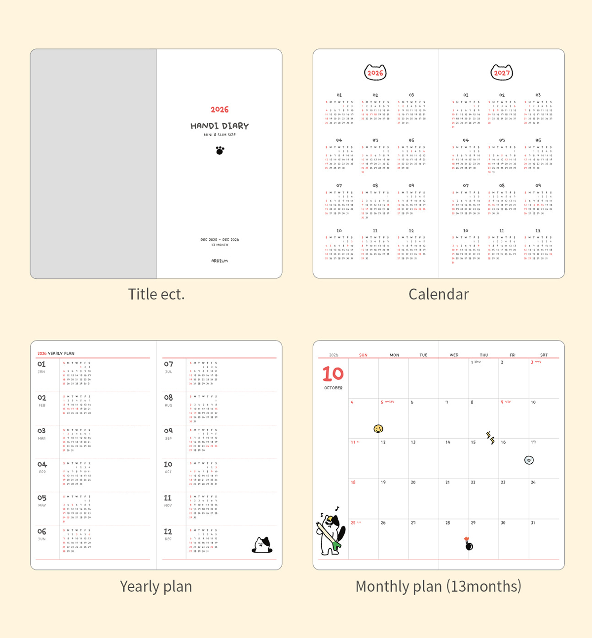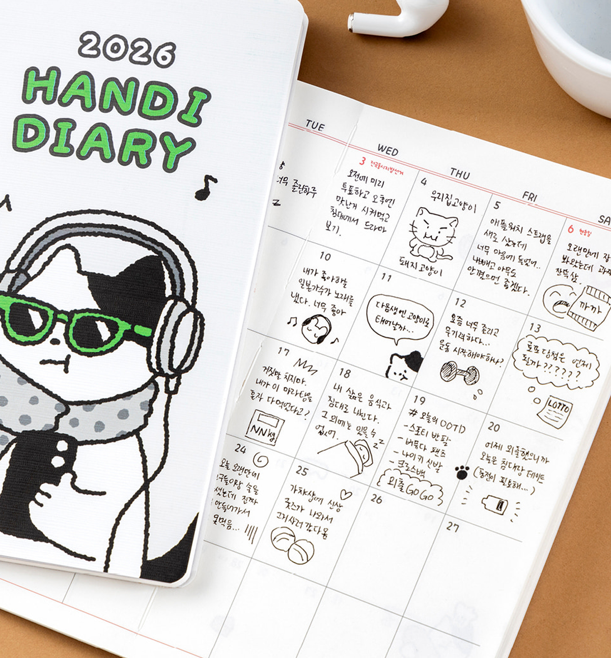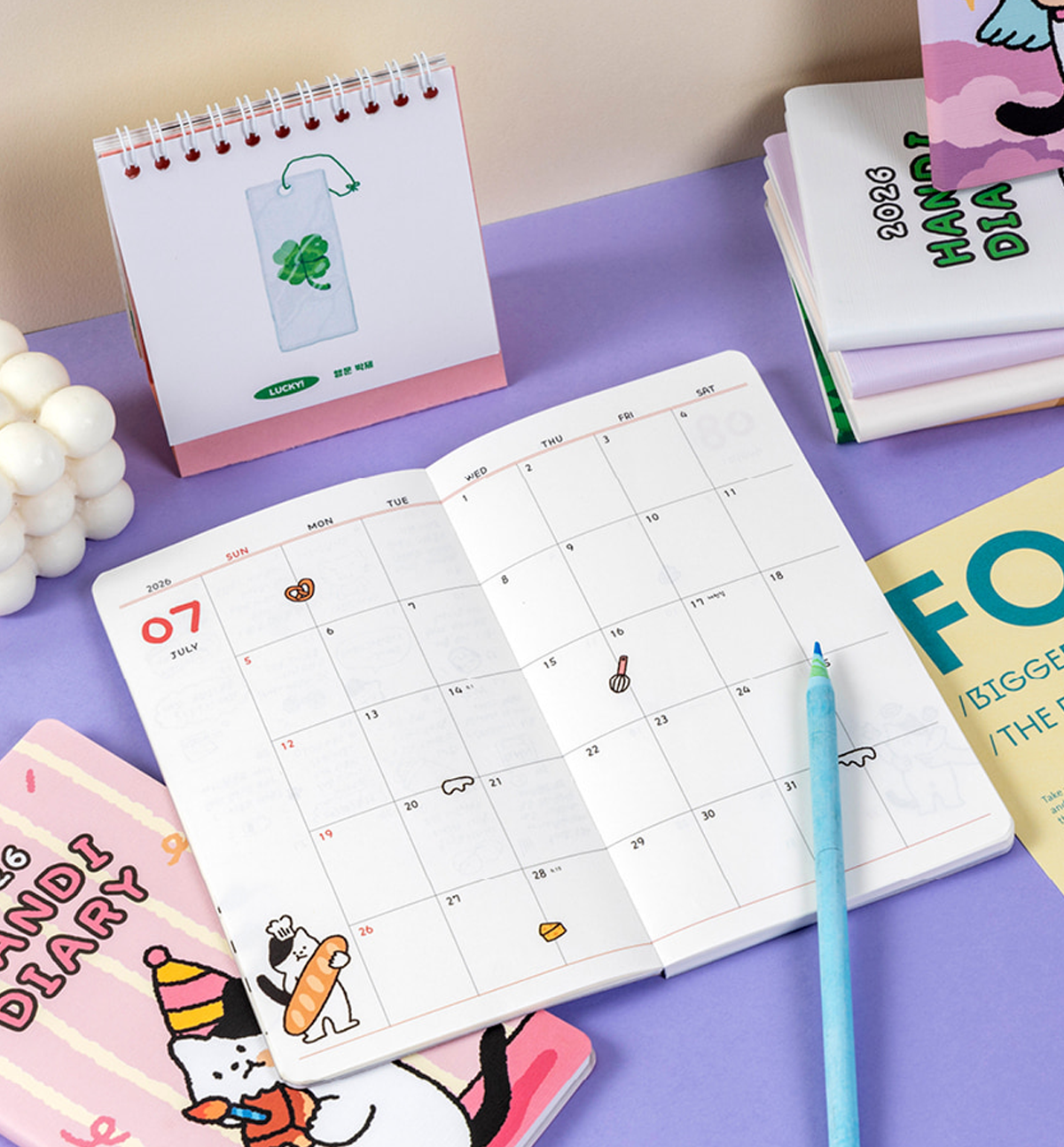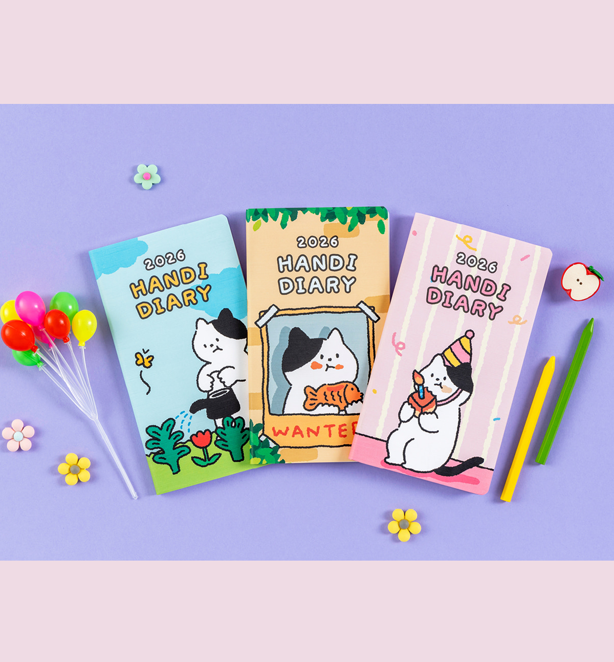 Say hello to HANDI, the easygoing cat who lives life without overthinking—and invites you to do the same! This compact, mini-sized planner fits right in the palm of your hand, perfect for recording your daily moments wherever you go.