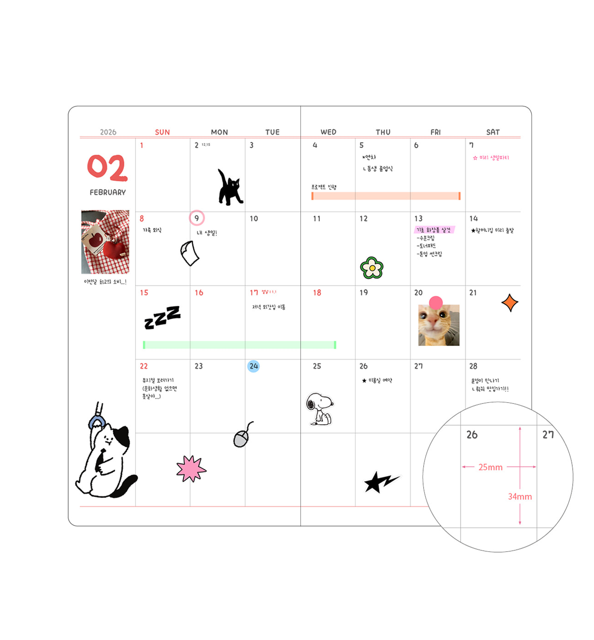 *Korean holidays are pre-marked throughout the calendar’s dated pages. But you can always add your personal holidays.