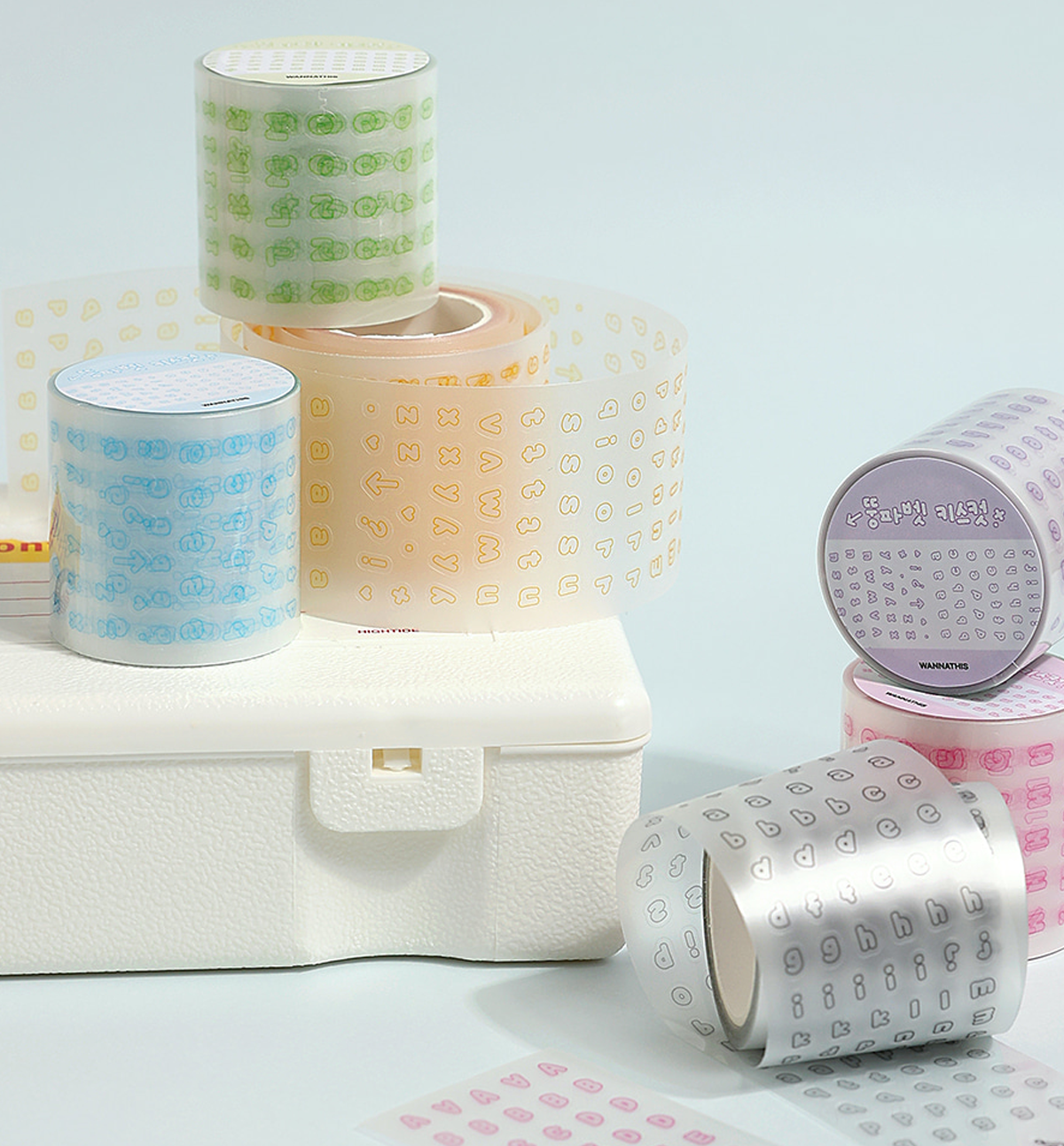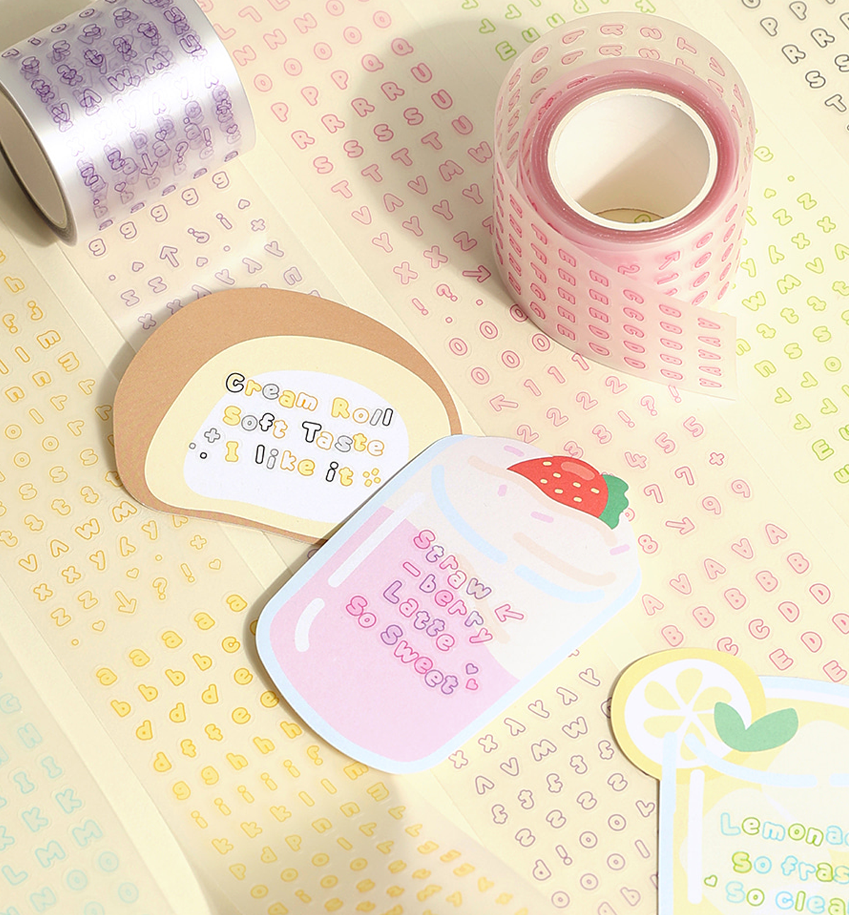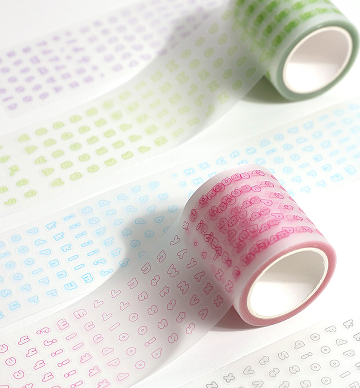 This Fluffy Alphabet Mini Kiss Cut Washi Tape comes in capital letter and lowercase alphabet and in 6 different colors.