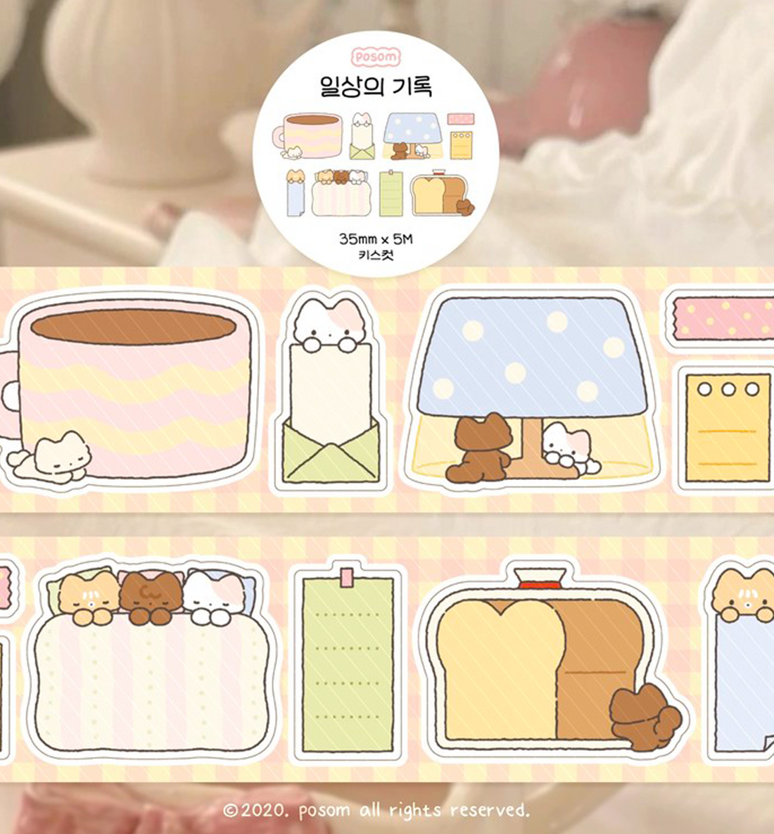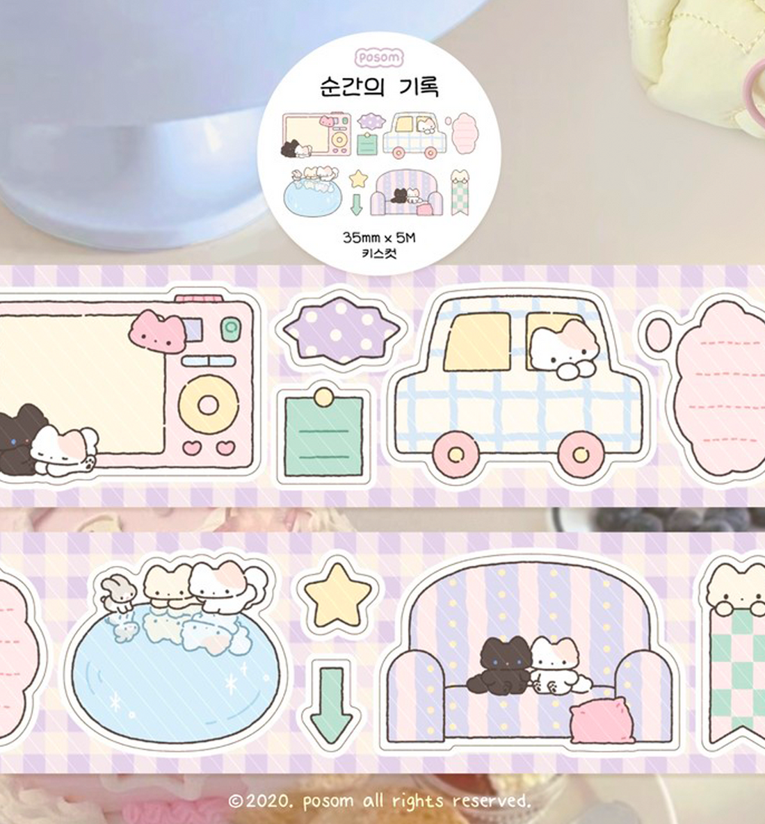 Fluffy Furball Label Memo Kiss Cut Washi Tape