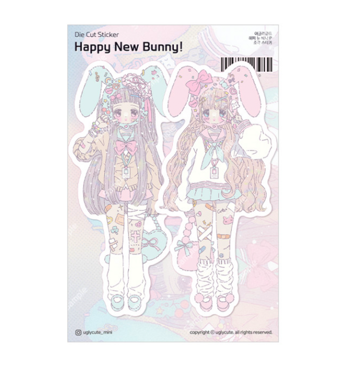 Happy New Bunny Pastel Die Cut Sticker