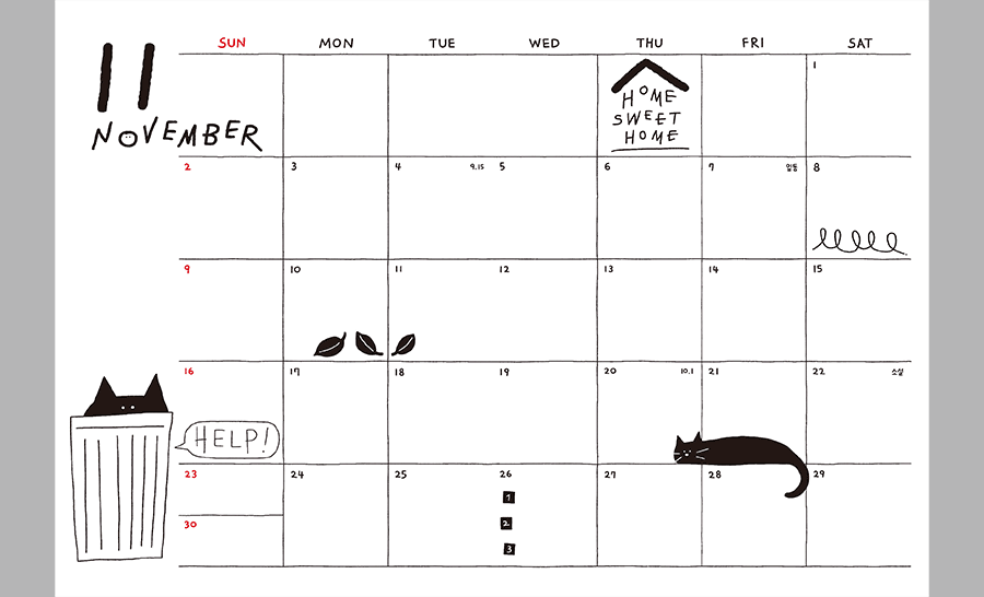 *Korean holidays are pre-marked throughout the calendar’s dated pages. But you can always add your personal holidays.