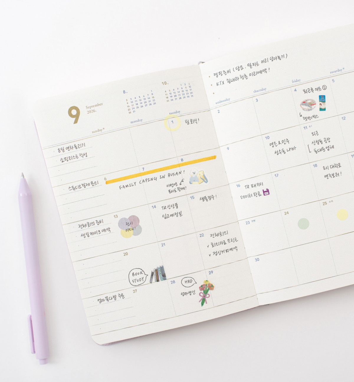 *Korean holidays are pre-marked throughout the calendar’s dated pages. But you can always add your personal holidays.