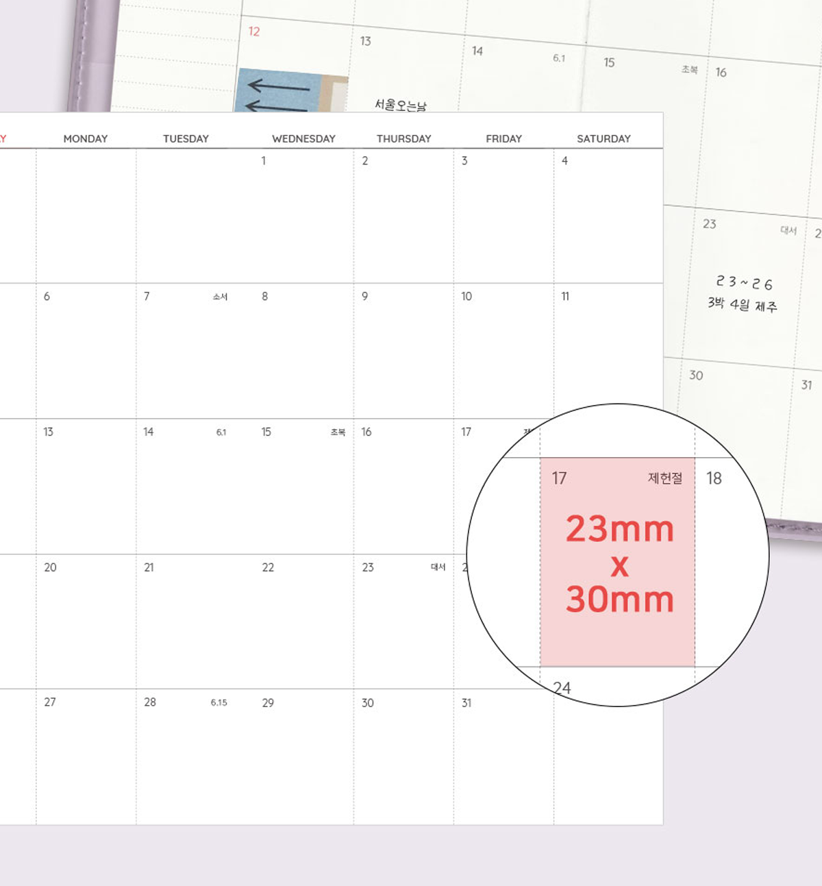 *Korean holidays are pre-marked throughout the calendar’s dated pages. But you can always add your personal holidays.