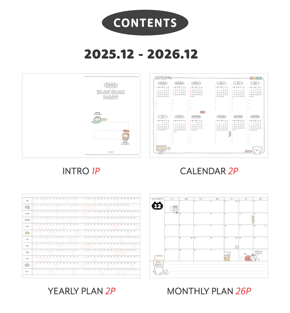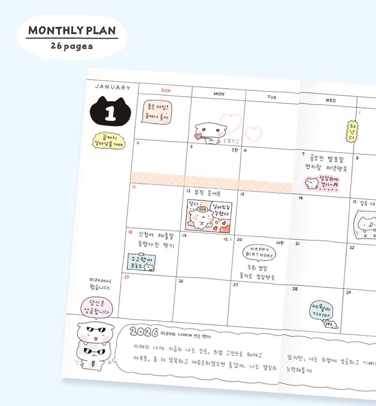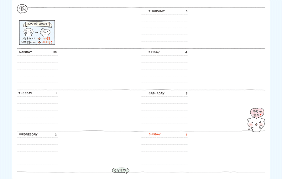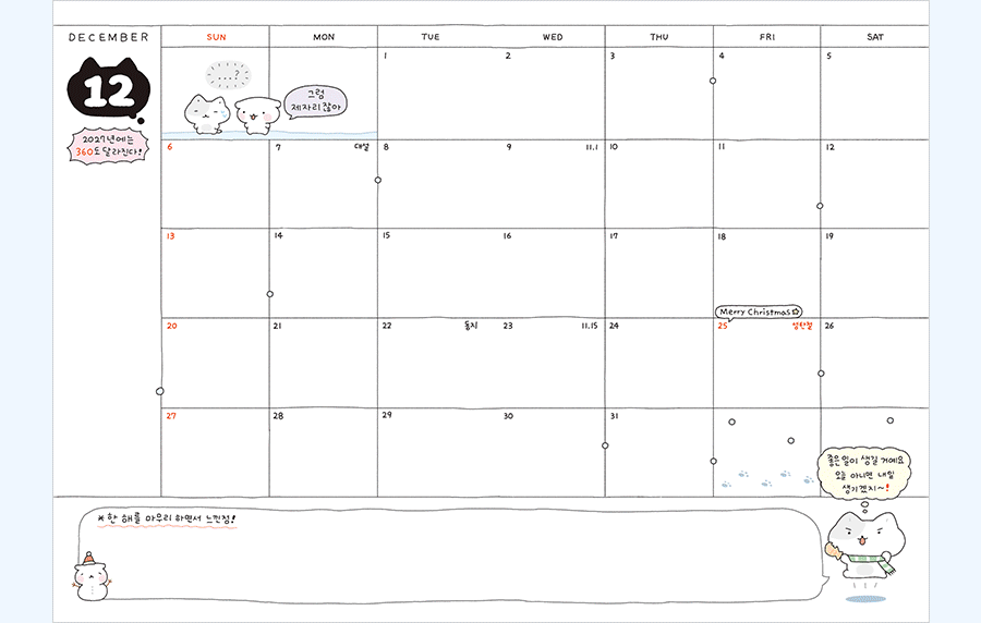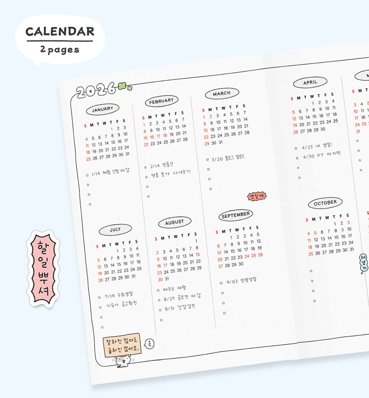 *Korean holidays are pre-marked throughout the calendar’s dated pages. But you can always add your personal holidays.