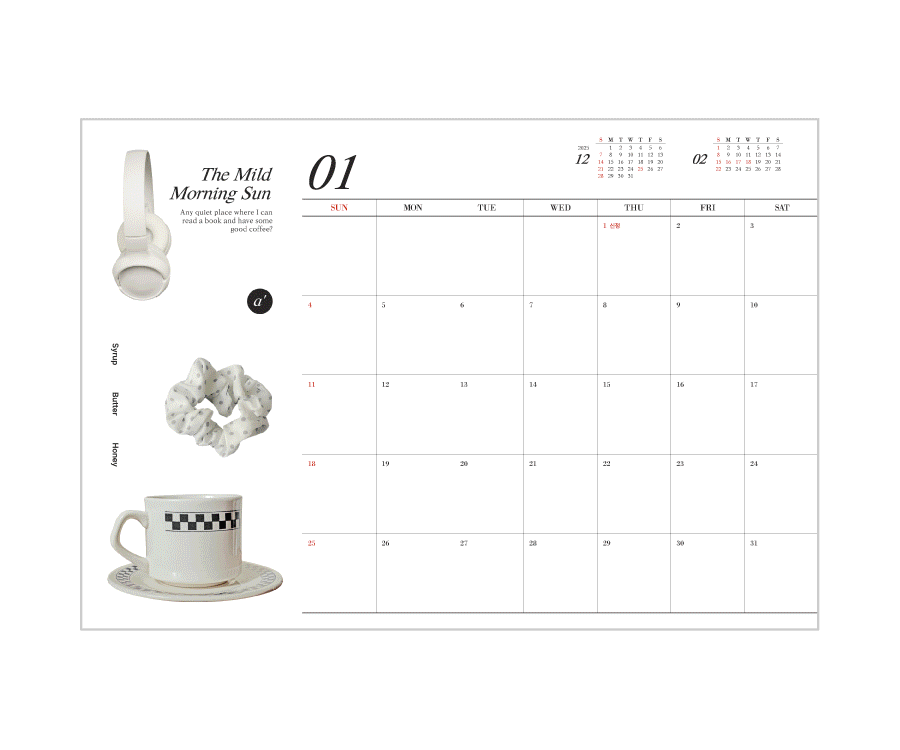 *Korean holidays are pre-marked throughout the calendar’s dated pages. But you can always add your personal holidays.