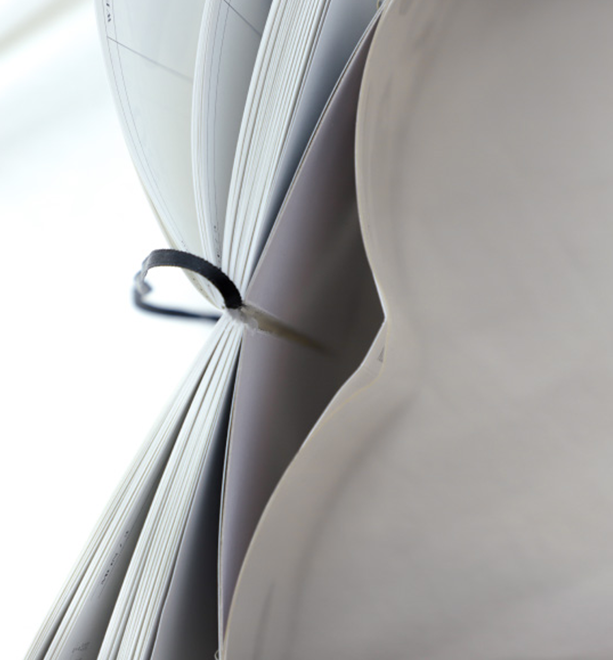 The transparent PVC cover protects against dirt and damage, while a satin bookmark ensures quick and easy access to your pages. A cover storage pocket provides extra space for postcards, stickers, or small notes.