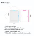 - Cover Pocket Size: 64 x 89 mm