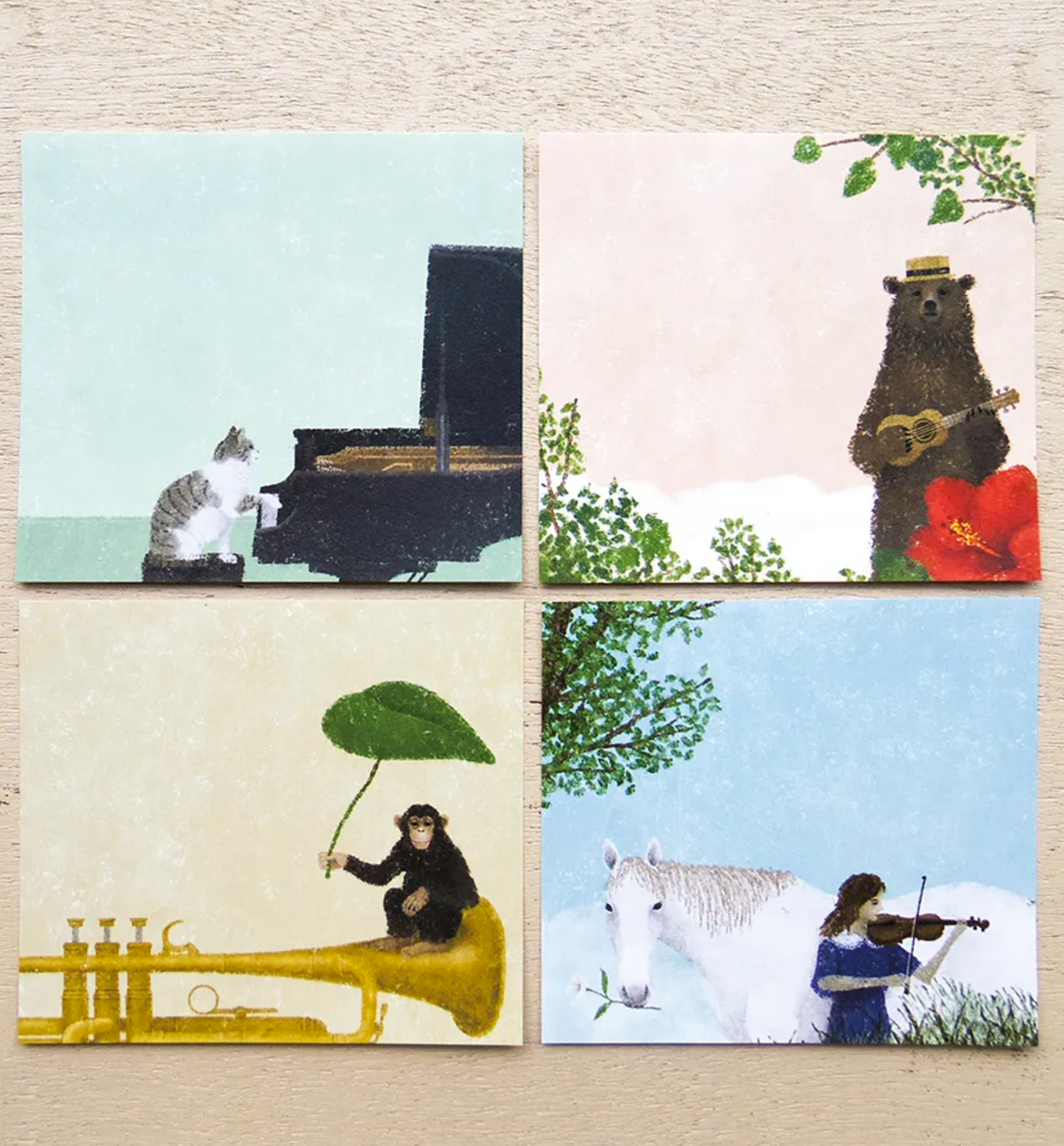 This delightful memo pad showcases playful illustrations of musical instruments including a piano, ukulele, trumpet, and violin. Each design feels lighthearted and cheerful—almost as if a happy melody might begin playing every time you write a note.