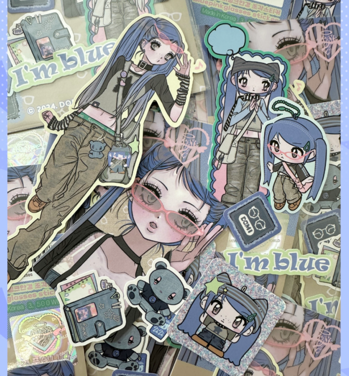 • Quantity: 1 Domi World Blue Hair Sticker [9 Pieces]