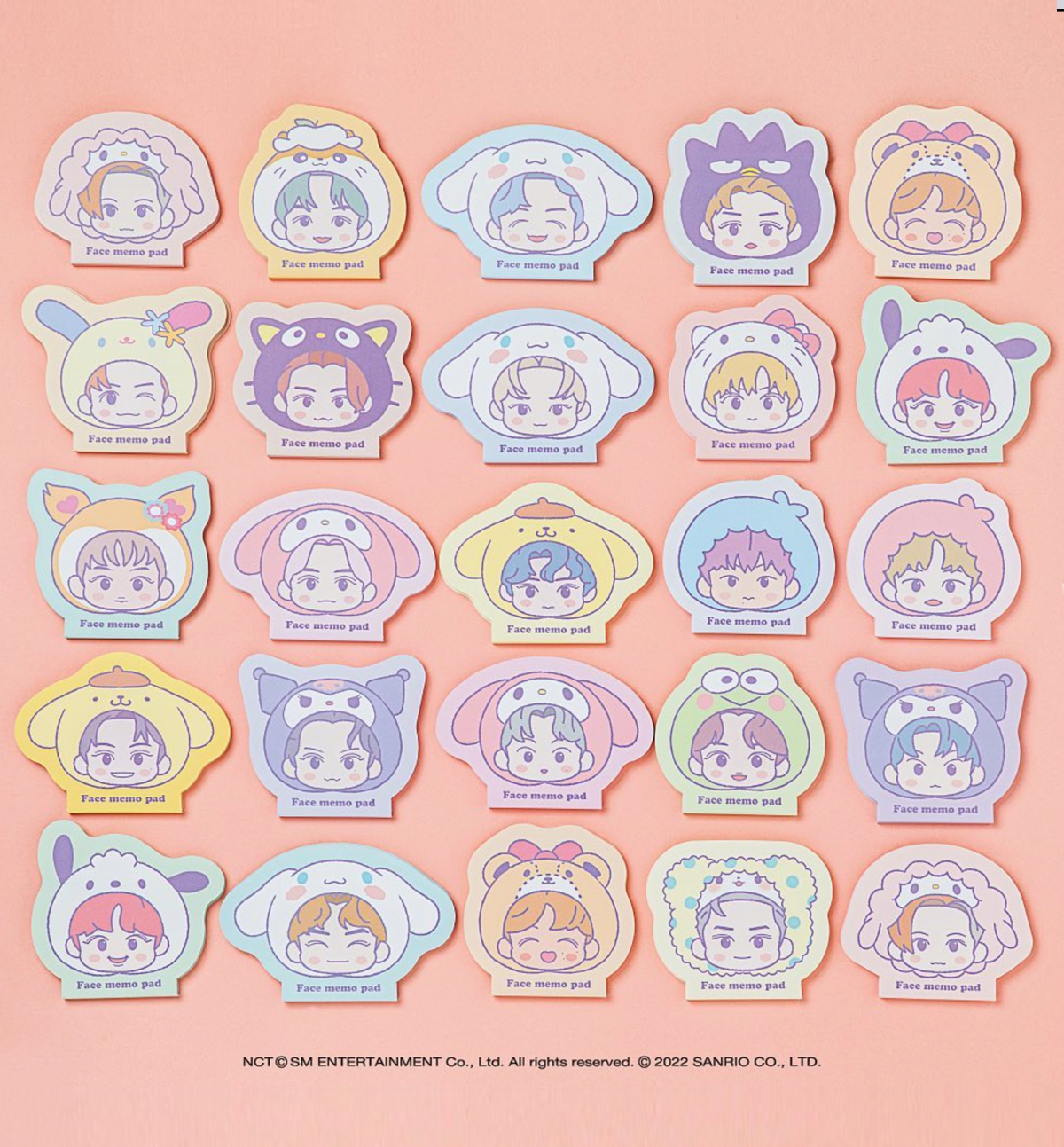 This beautiful NCT & SANRIO Face Memopad comes in 22 different designs.