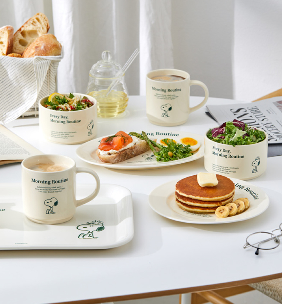 This listing is only for Peanuts Snoopy Round Plate [Lettering Line] No mug, No bowl, No accessories included!