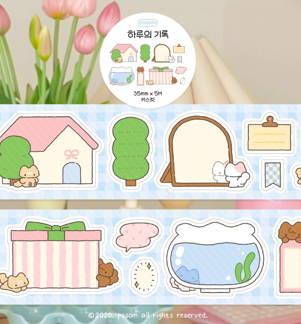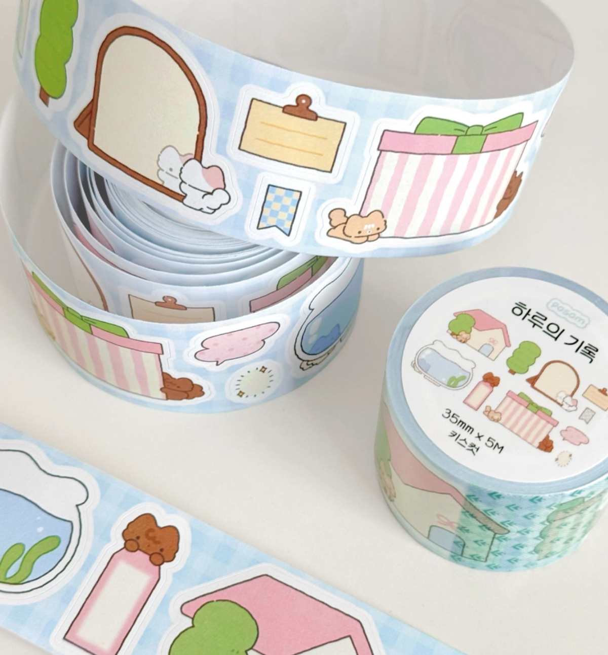 - Quantity: 1 Record Of The Day Memo Kiss Cut Washi Tape