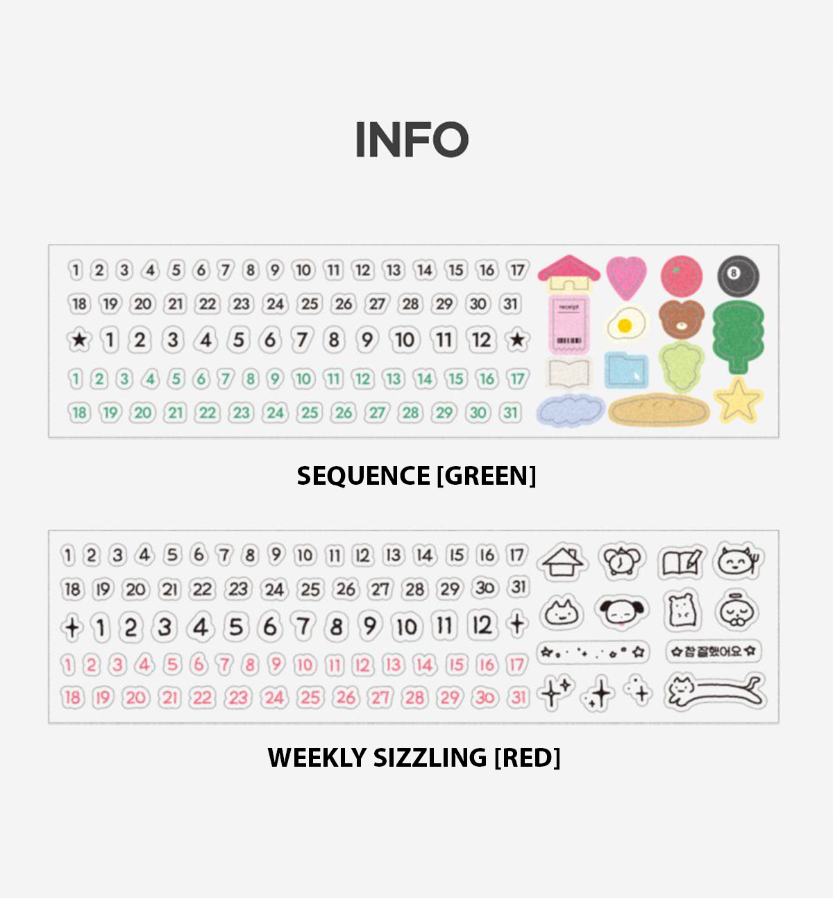 - Quantity: 1 Sizzling Monthly Number Kiss Cut Washi Tape