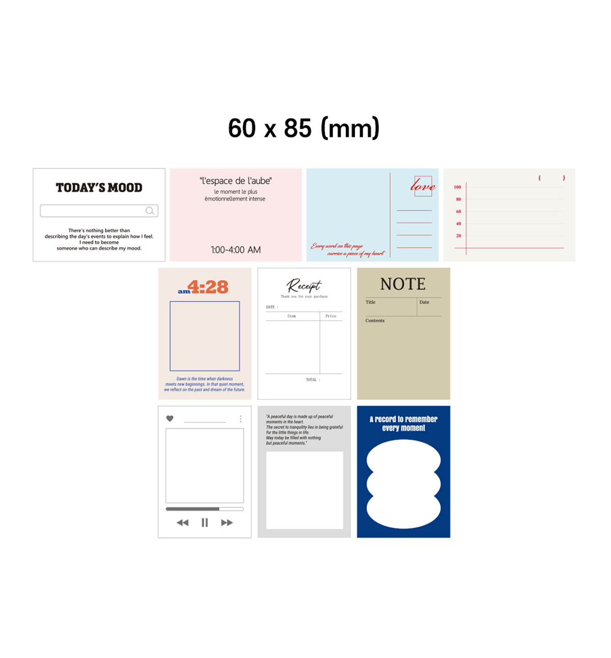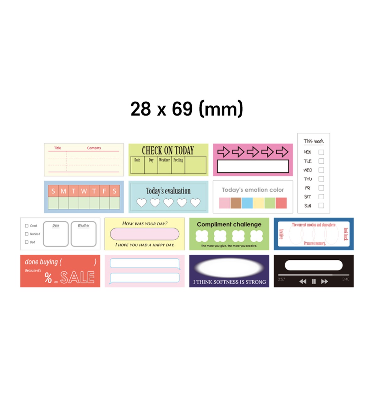This beautiful Today's Record Sticker Pack [102 Stickers] comes in 5 different sizes. It comes 2 sheets per designs, 51 unique designs.