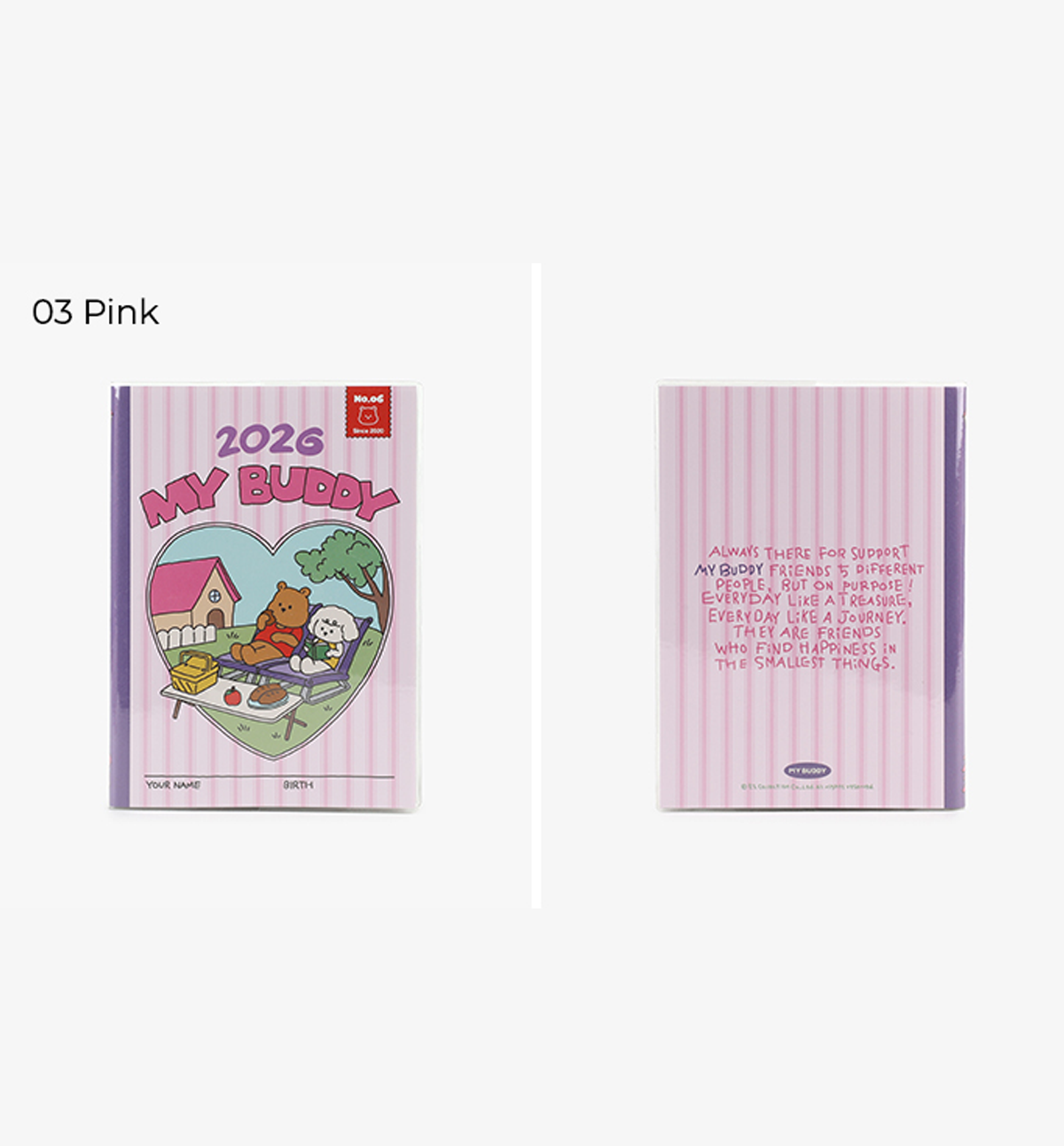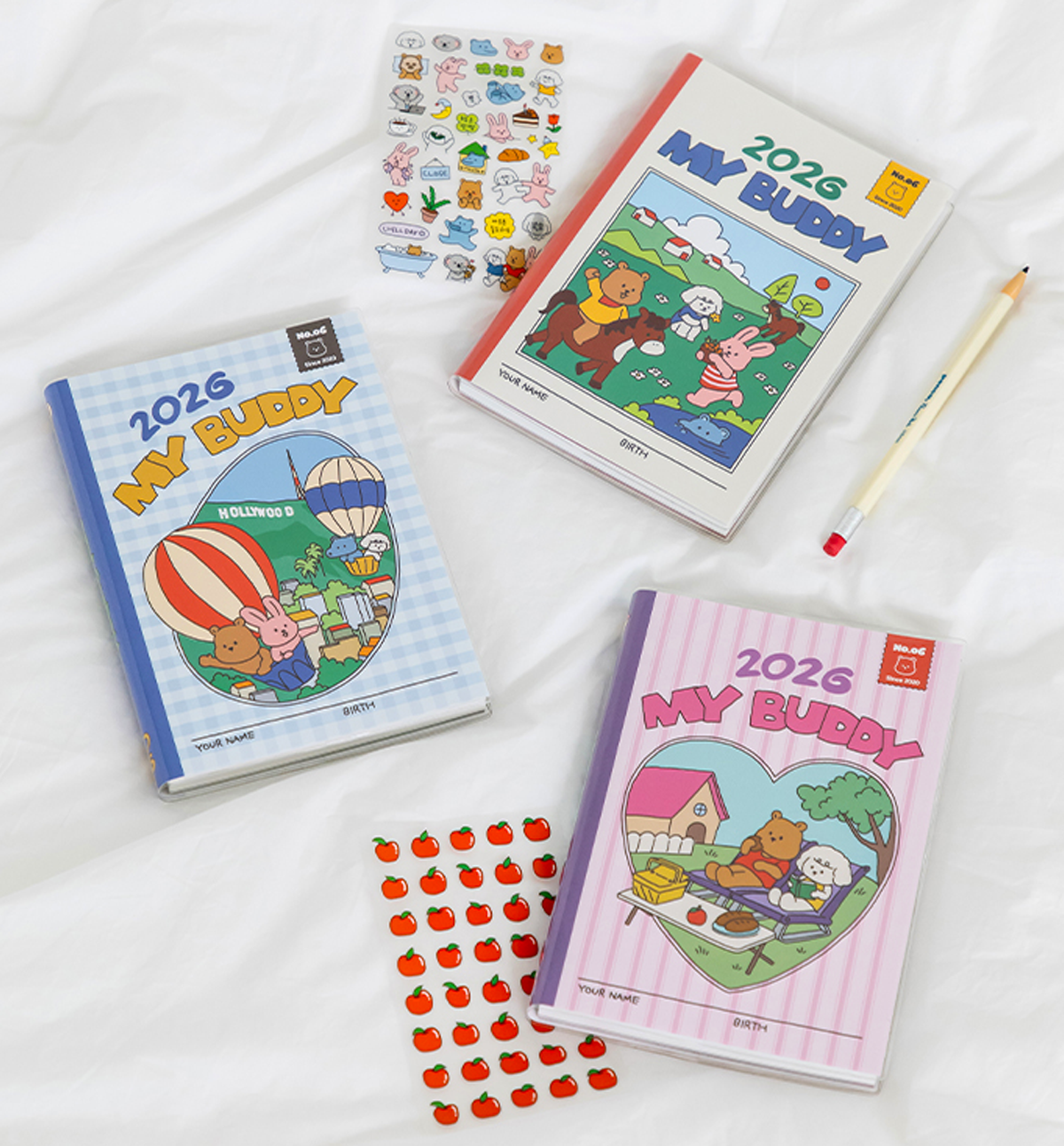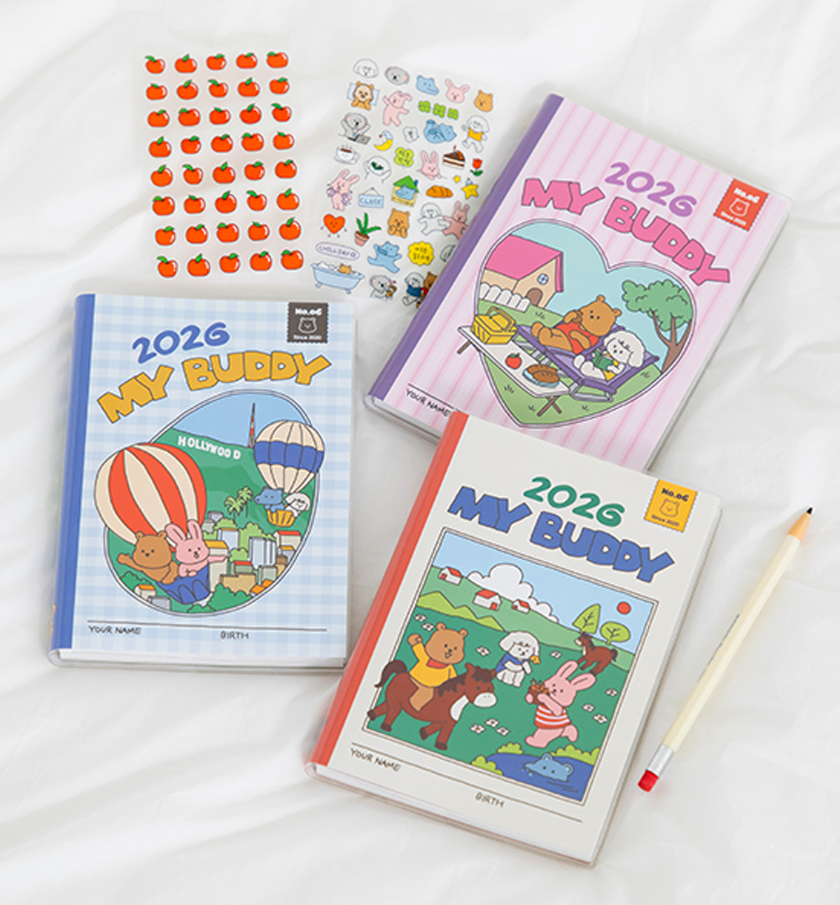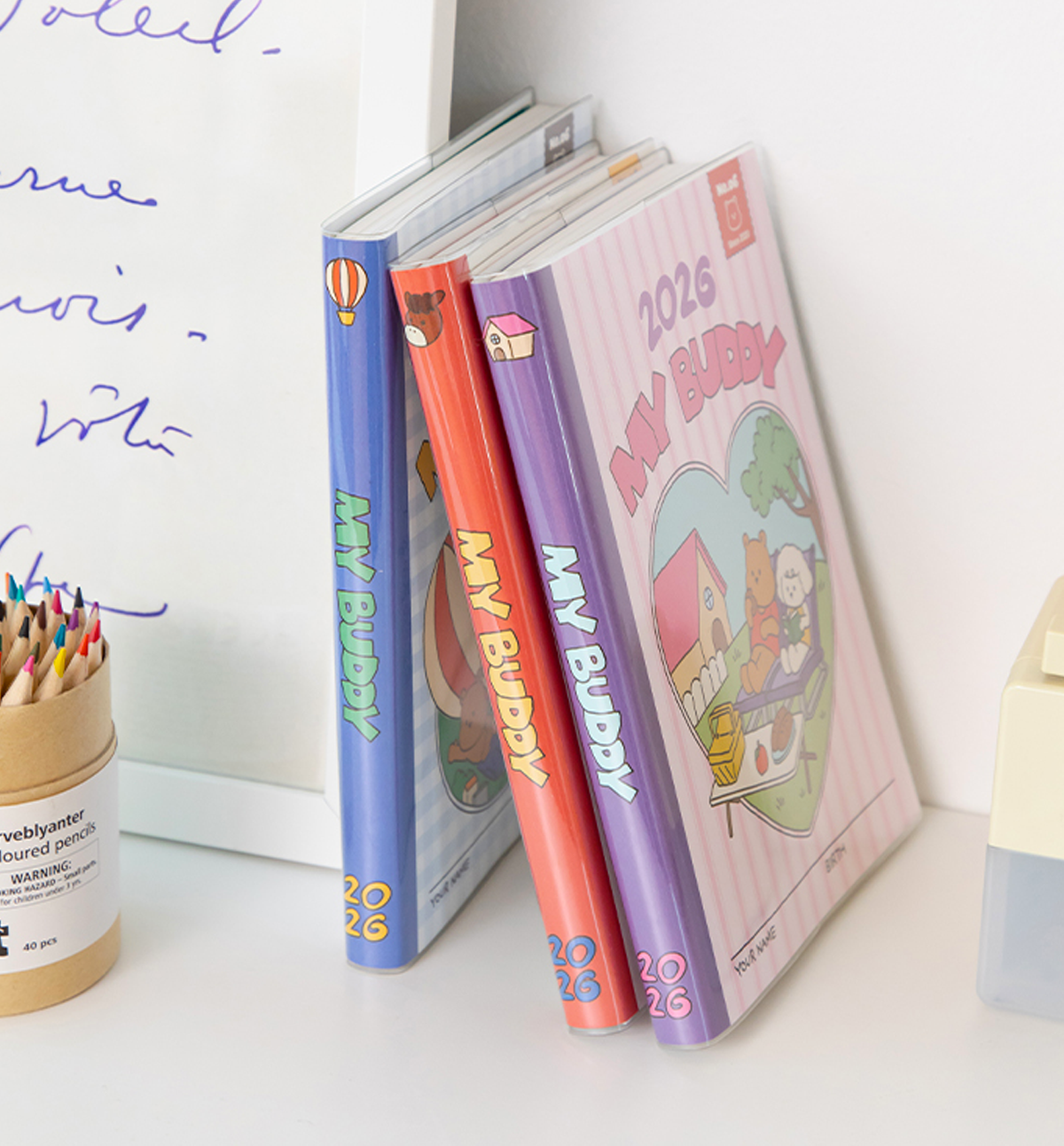 Designed for durability, it comes with a PVC cover for long-lasting use. The planner includes My Buddy character stickers and apple stickers to make planning more fun and personal.