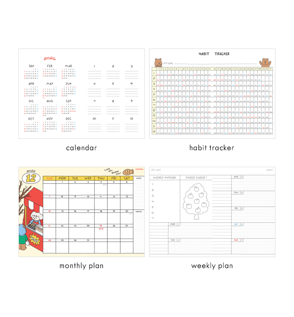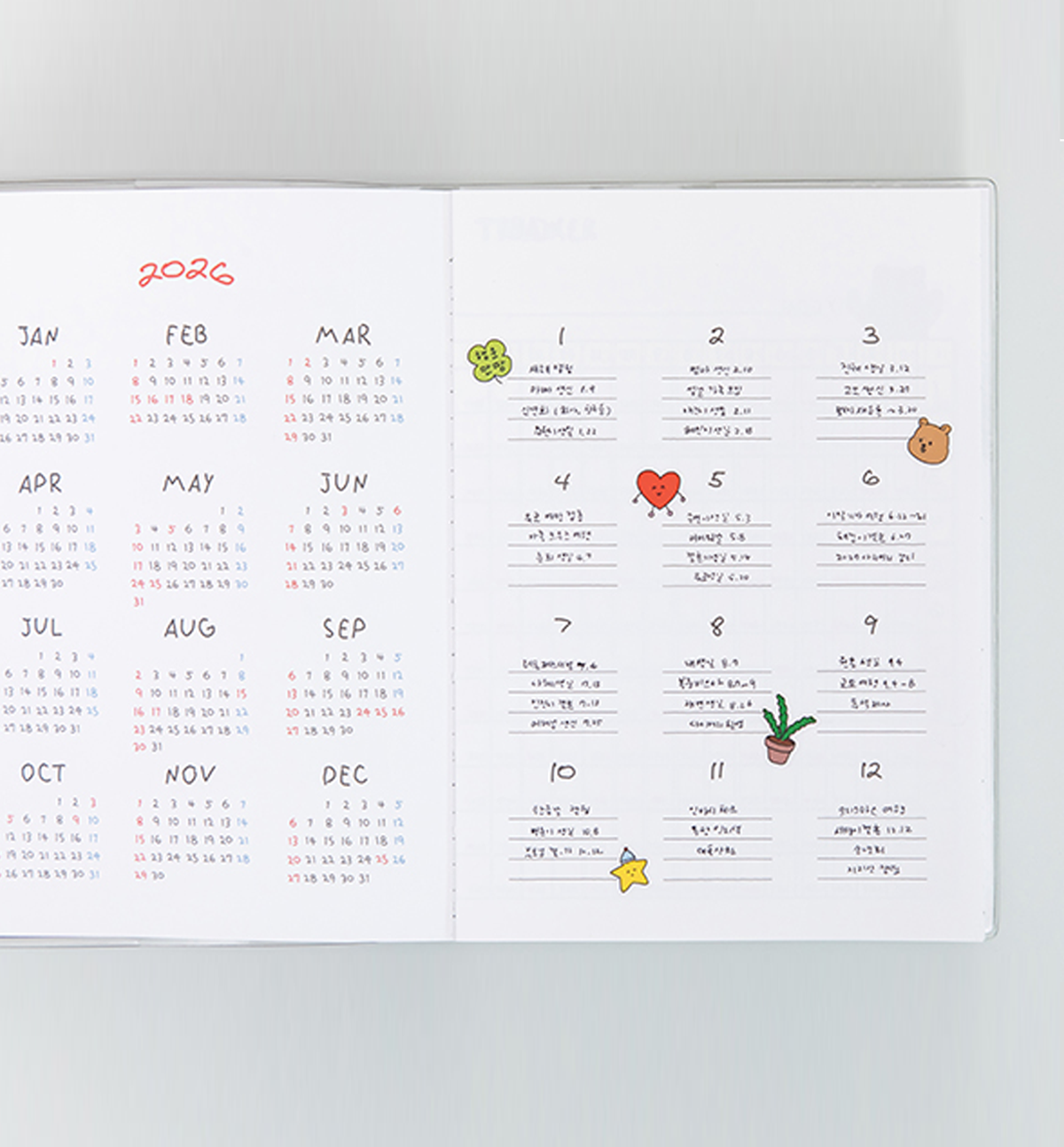 *Korean holidays are pre-marked throughout the calendar’s dated pages. But you can always add your personal holidays.