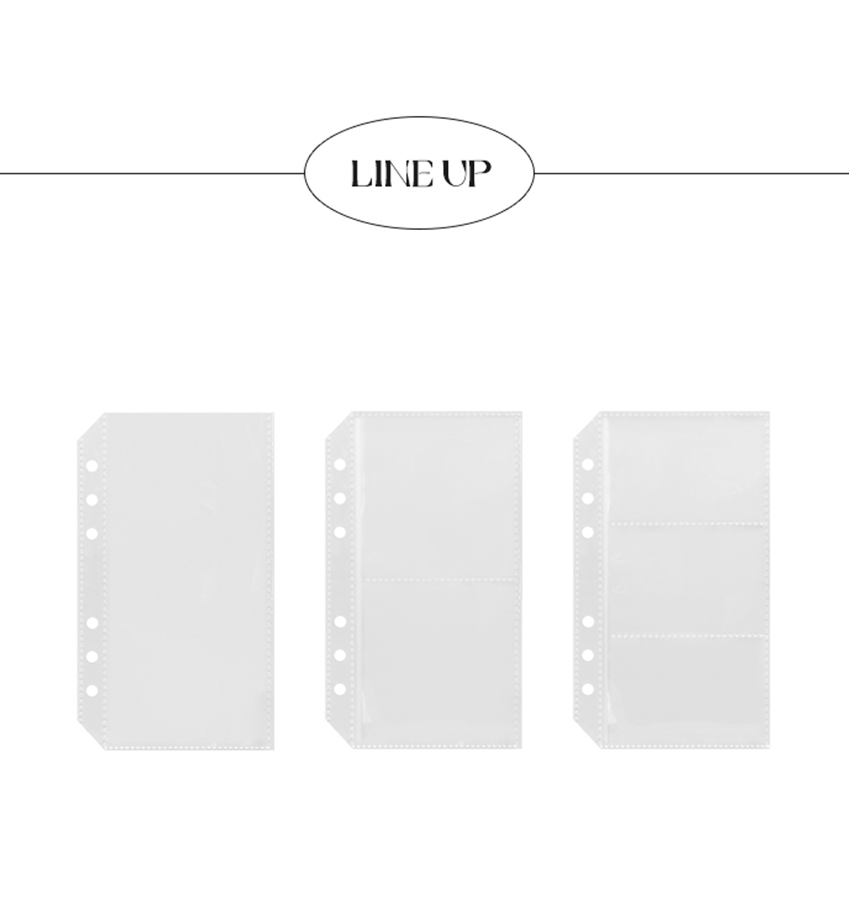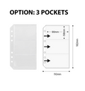 This beautiful A6 Clear Pocket File comes in 3 different sleeves layout: 1 pocket, 2 pockets and 3 pockets. Please, see pictures for reference.