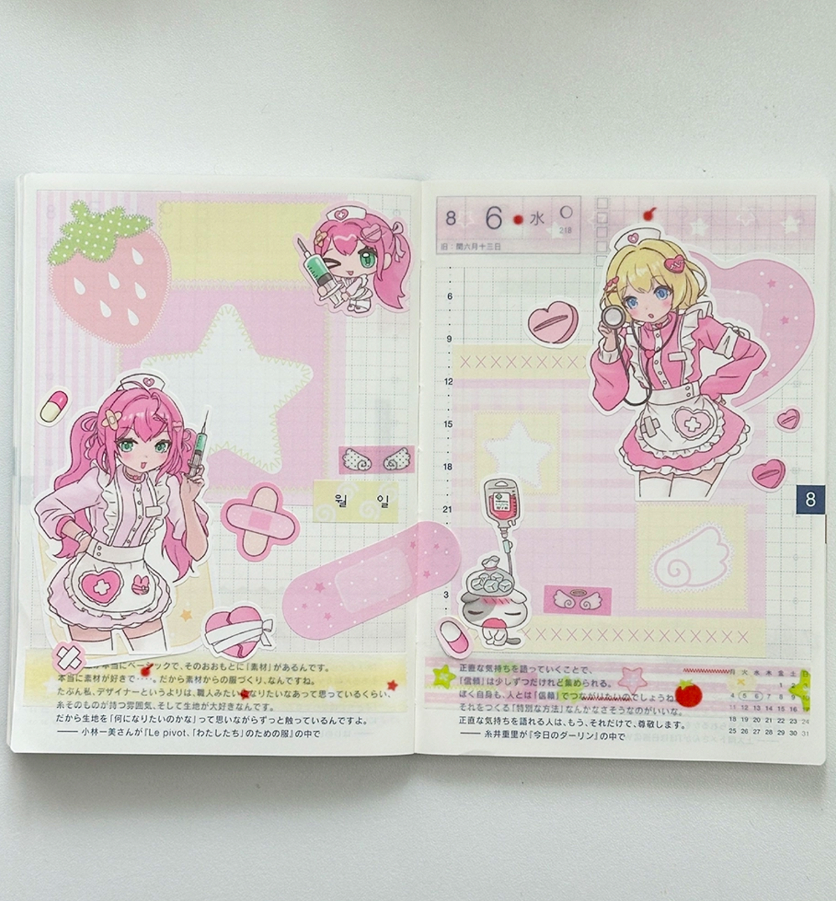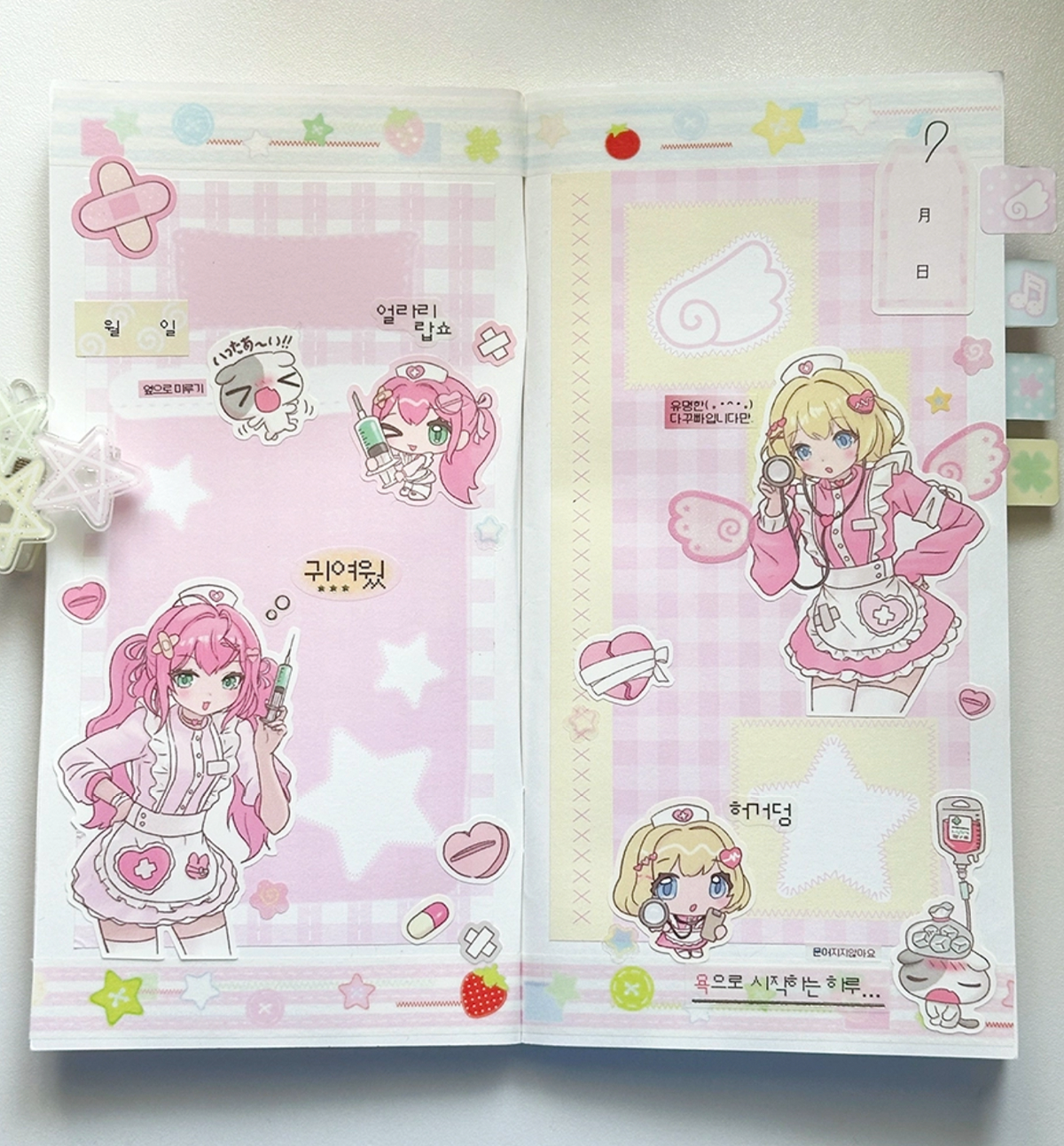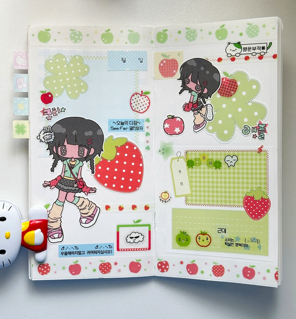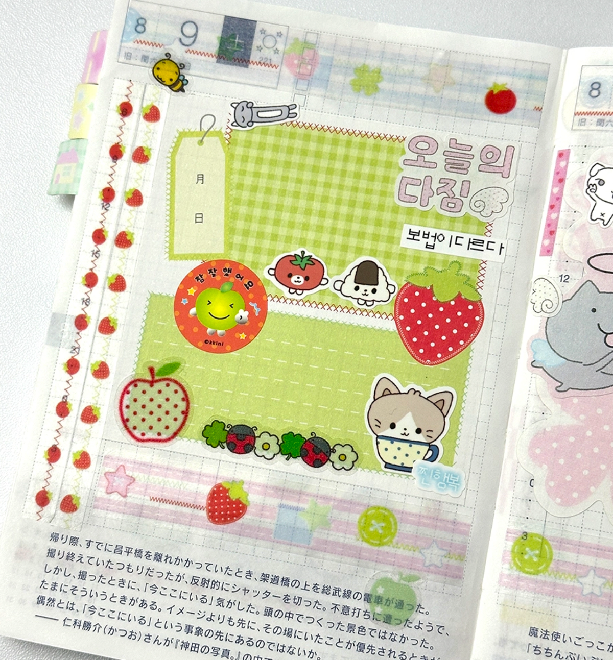 A versatile sticker set featuring layout elements and patterned designs with cute graphics. Perfect for diaries, scrapbooks, and DIY projects. Easy to write on, they add depth and charm to any page.