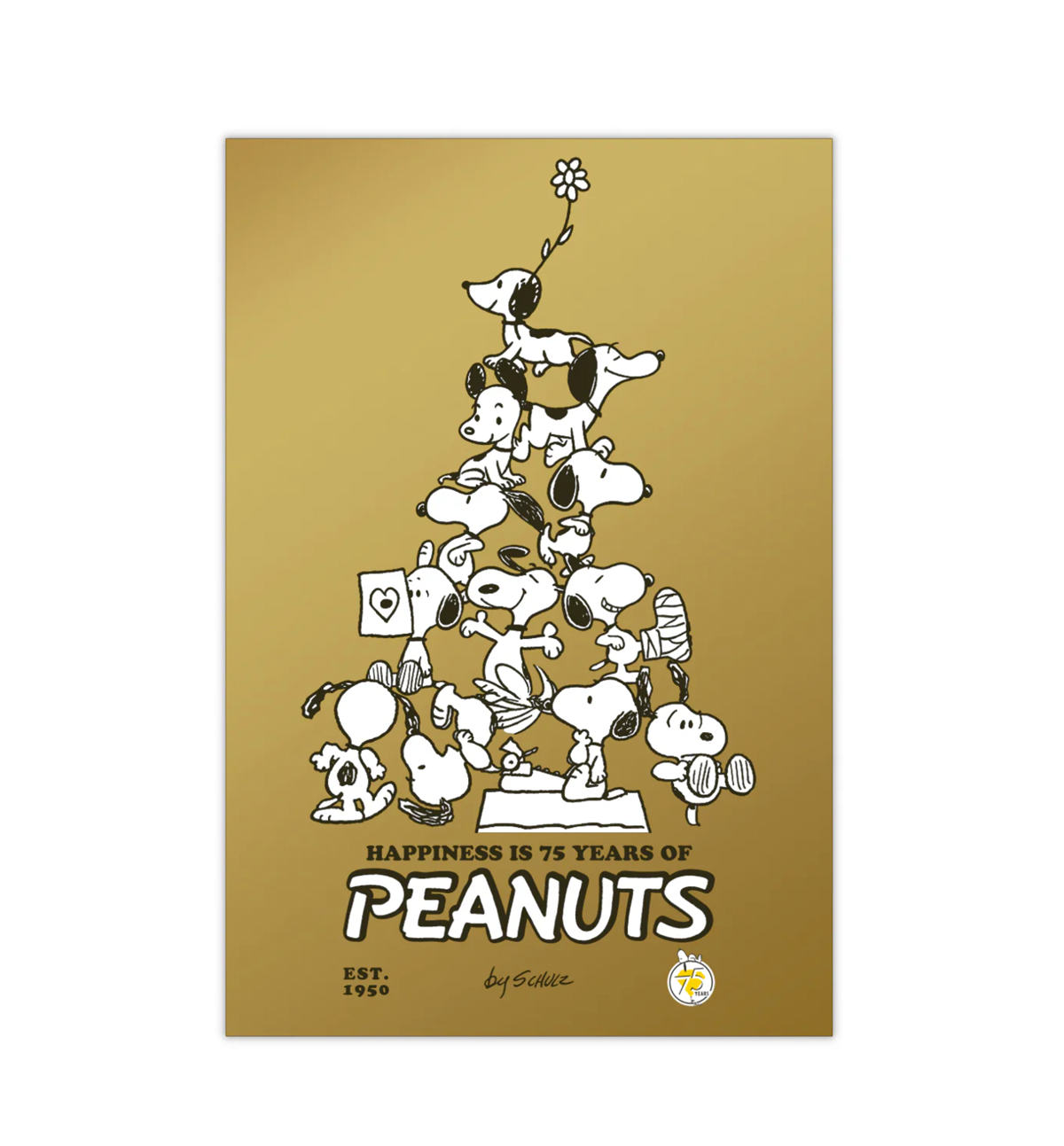 Anniversary design featuring a celebratory concert scene. PEANUTS, which began serialization in the United States on October 2, 1950, will celebrate its 75th anniversary in 2025!