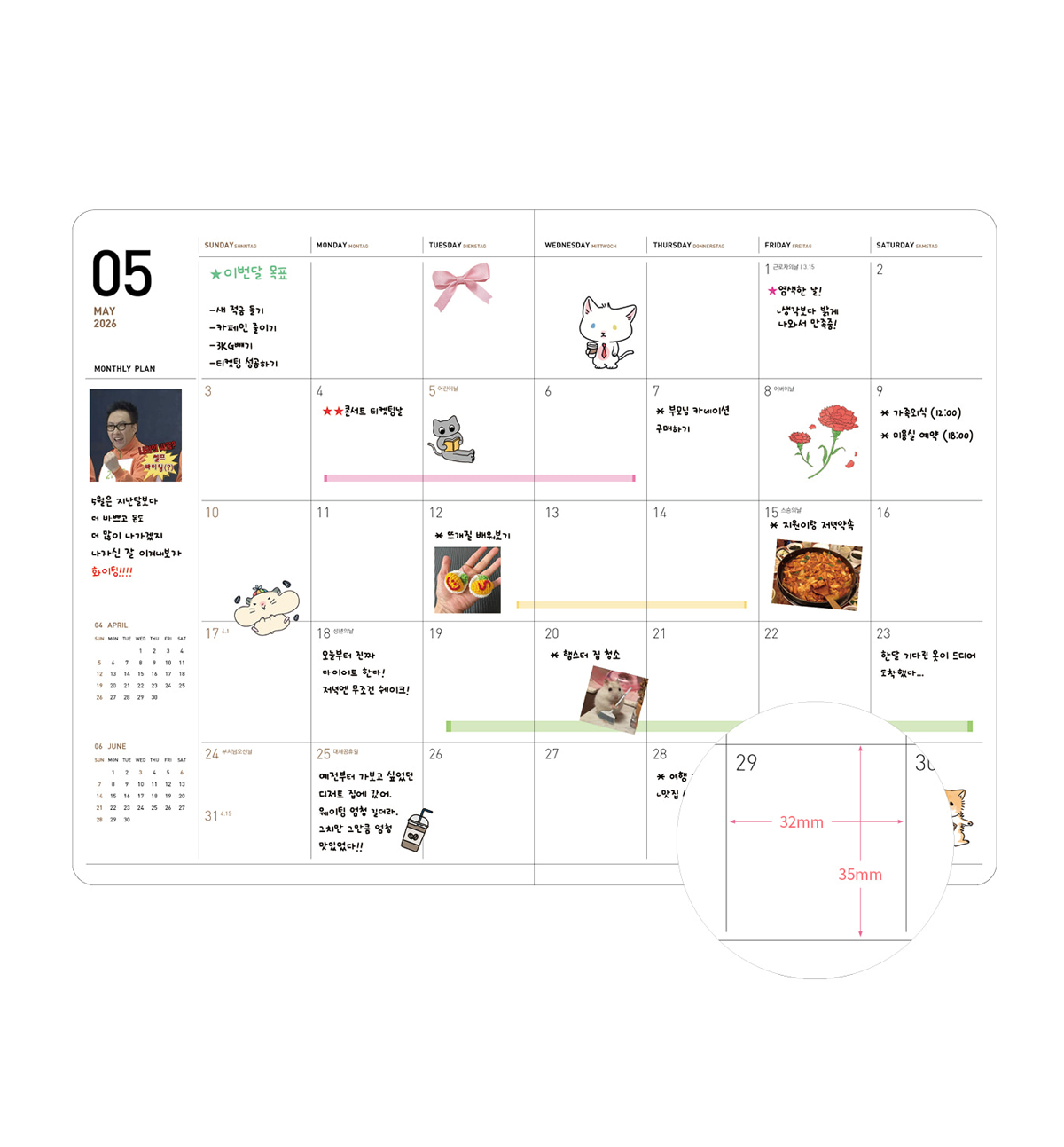 *Korean holidays are pre-marked throughout the calendar’s dated pages. But you can always add your personal holidays.