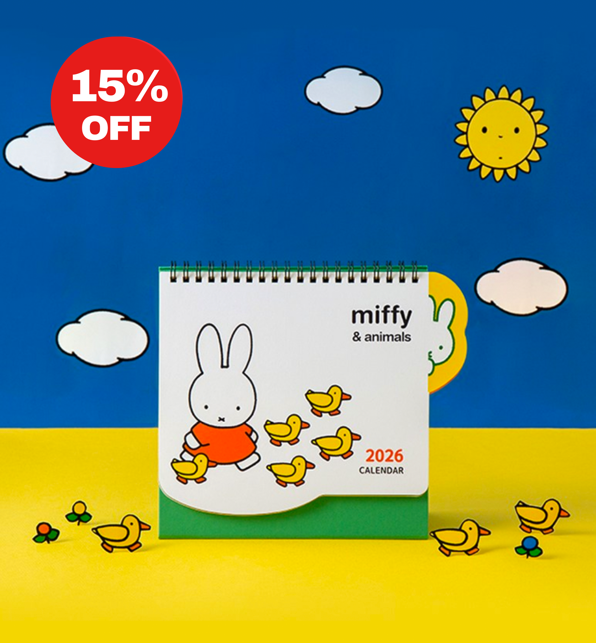 Known for her pure, positive, and curious personality, Miffy brings a touch of joy and simplicity to your daily routine. The calendar includes a peek-a-boo design on the side and a wide memo area—perfect for jotting down quick notes or reminders.