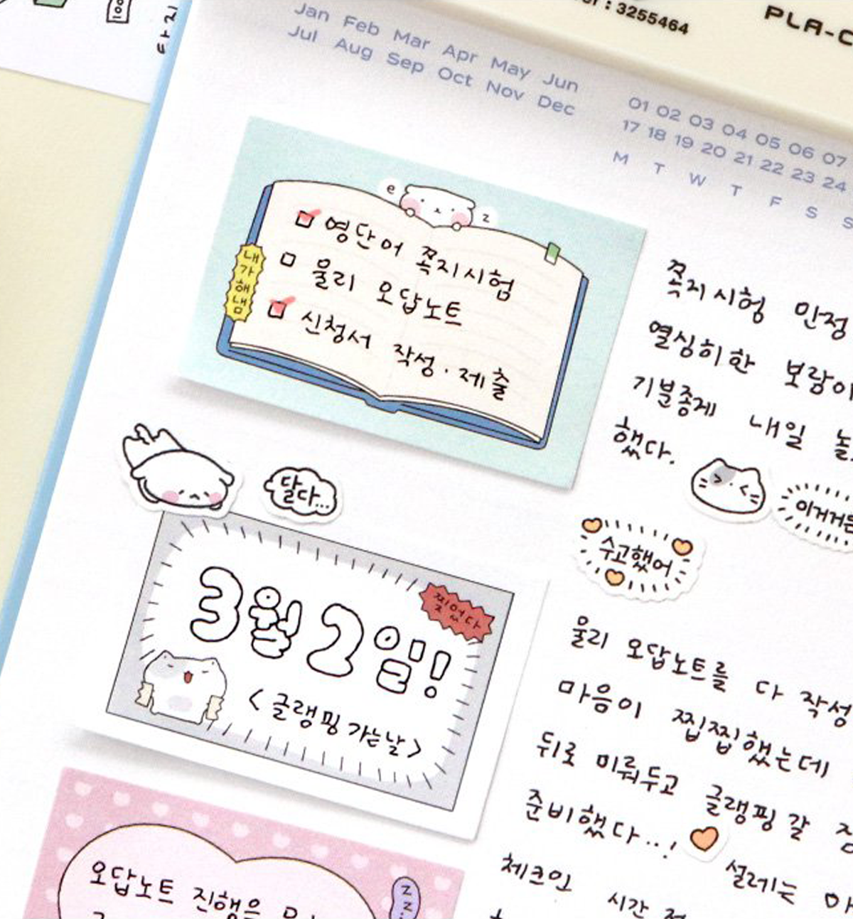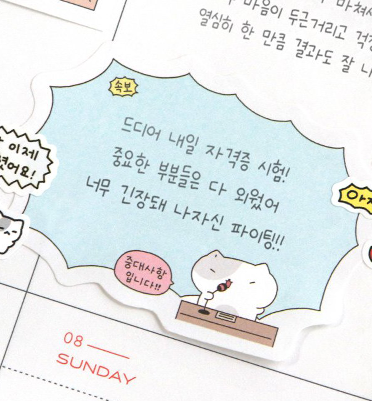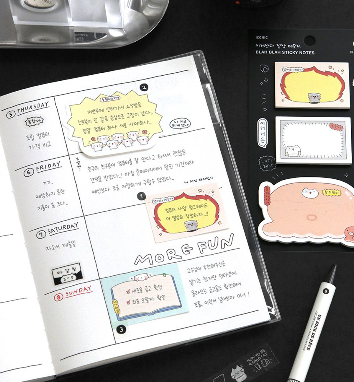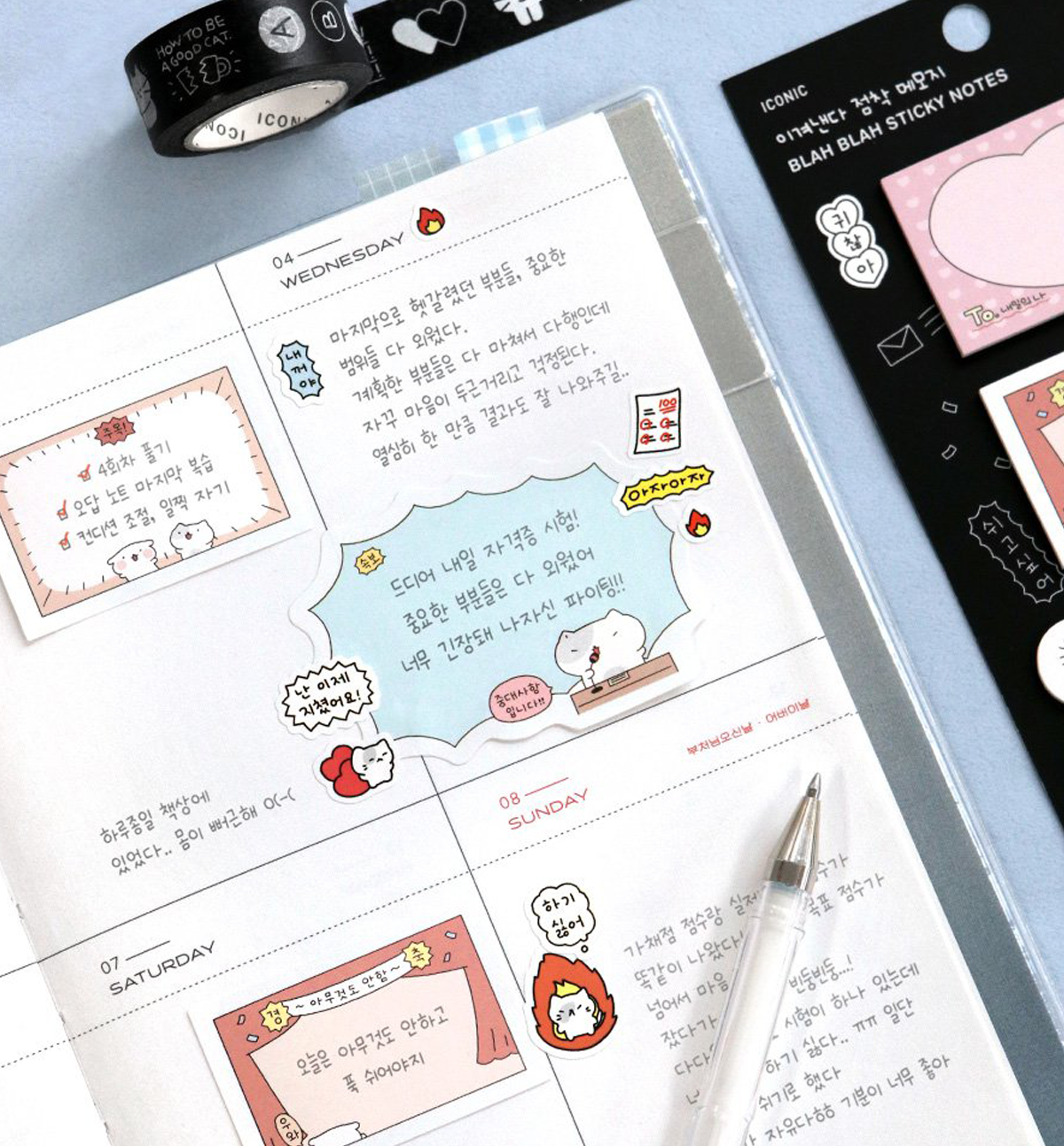 This beautiful sticky notes comes in 4 different designs: 01. Fighting, 02. Lazy, 03. Flex and 04. Focus. Please, see picture for reference.