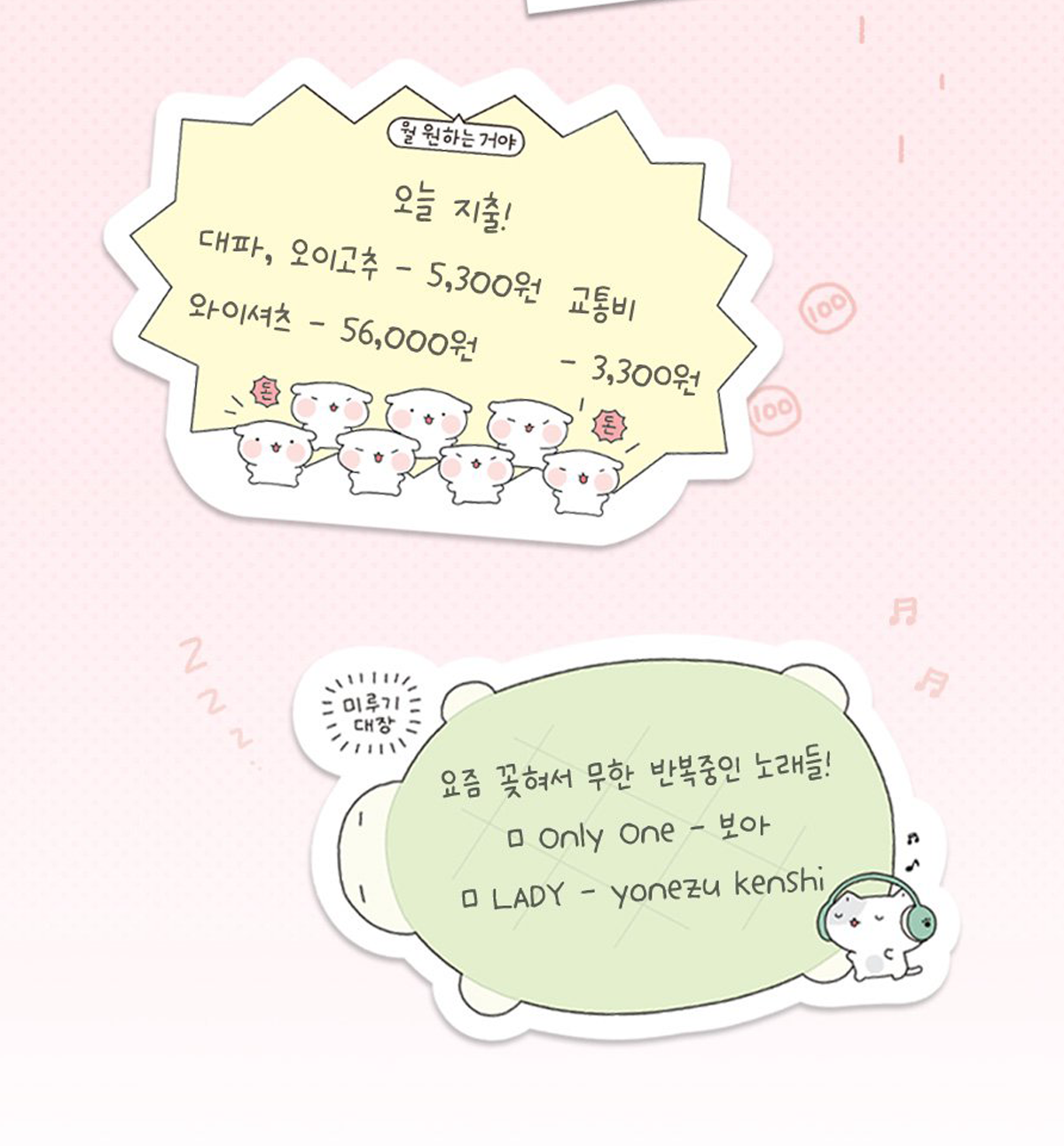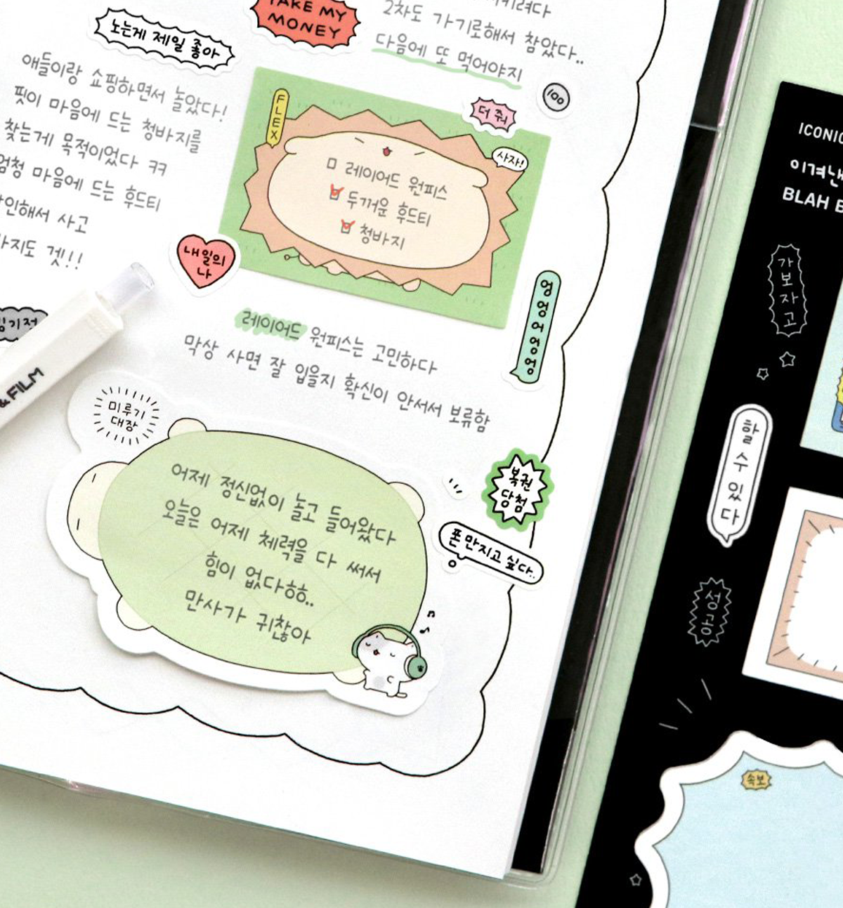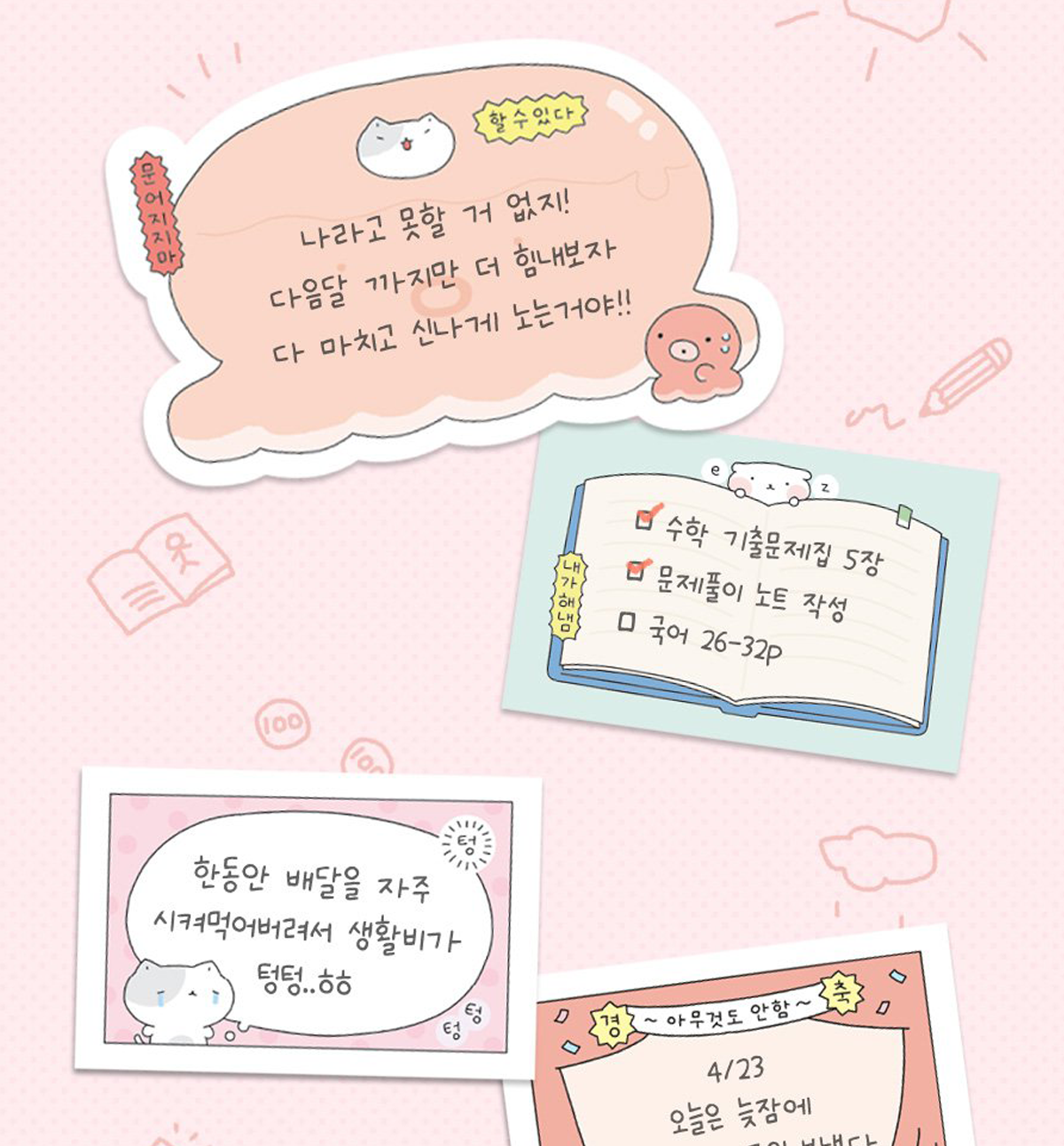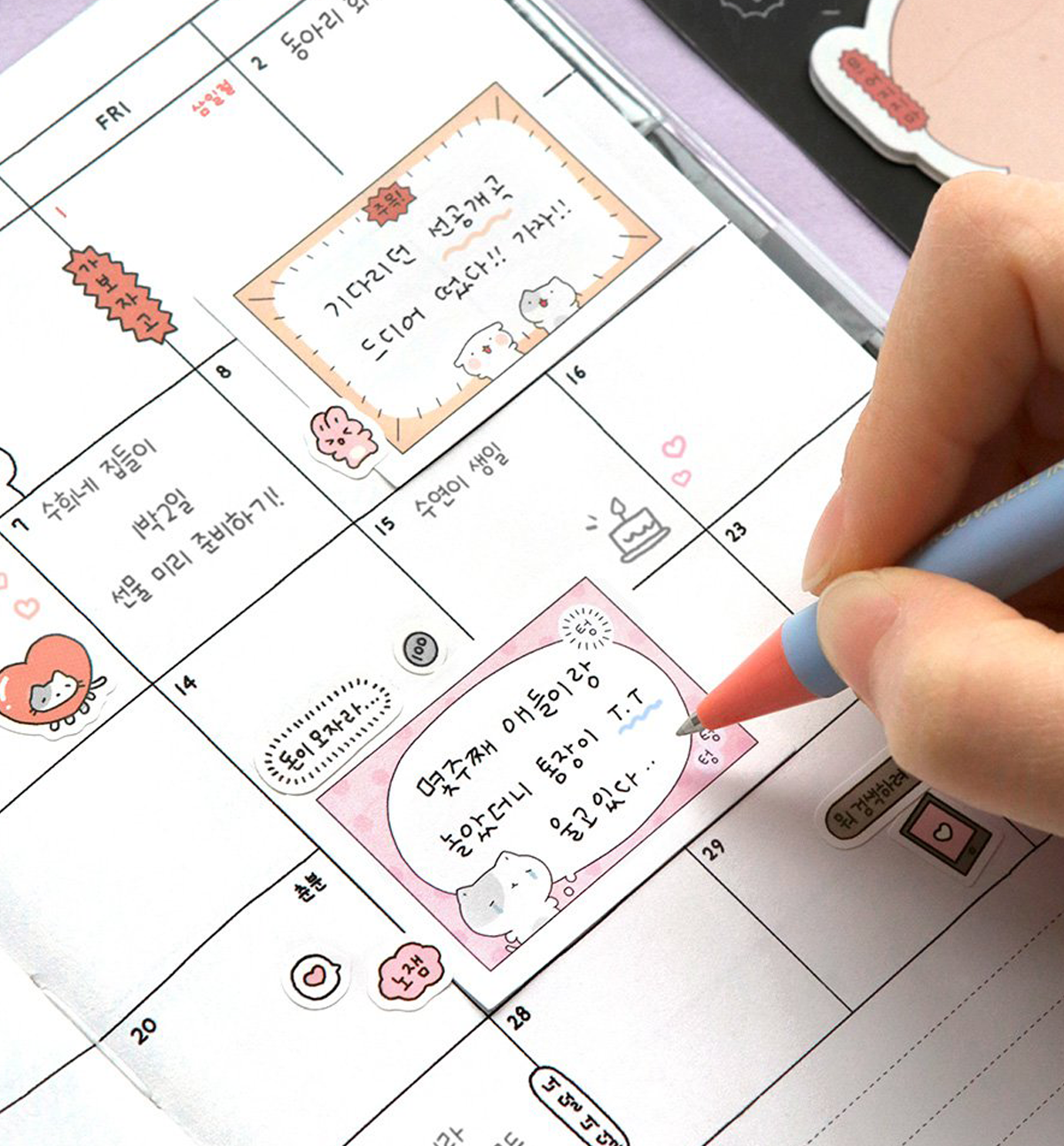 This beautiful sticky notes comes in 4 different designs: 01. Fighting, 02. Lazy, 03. Flex and 04. Focus. Please, see picture for reference.