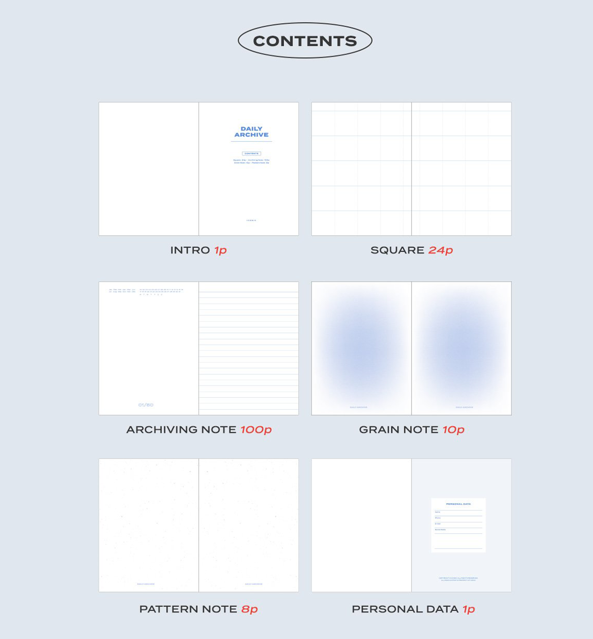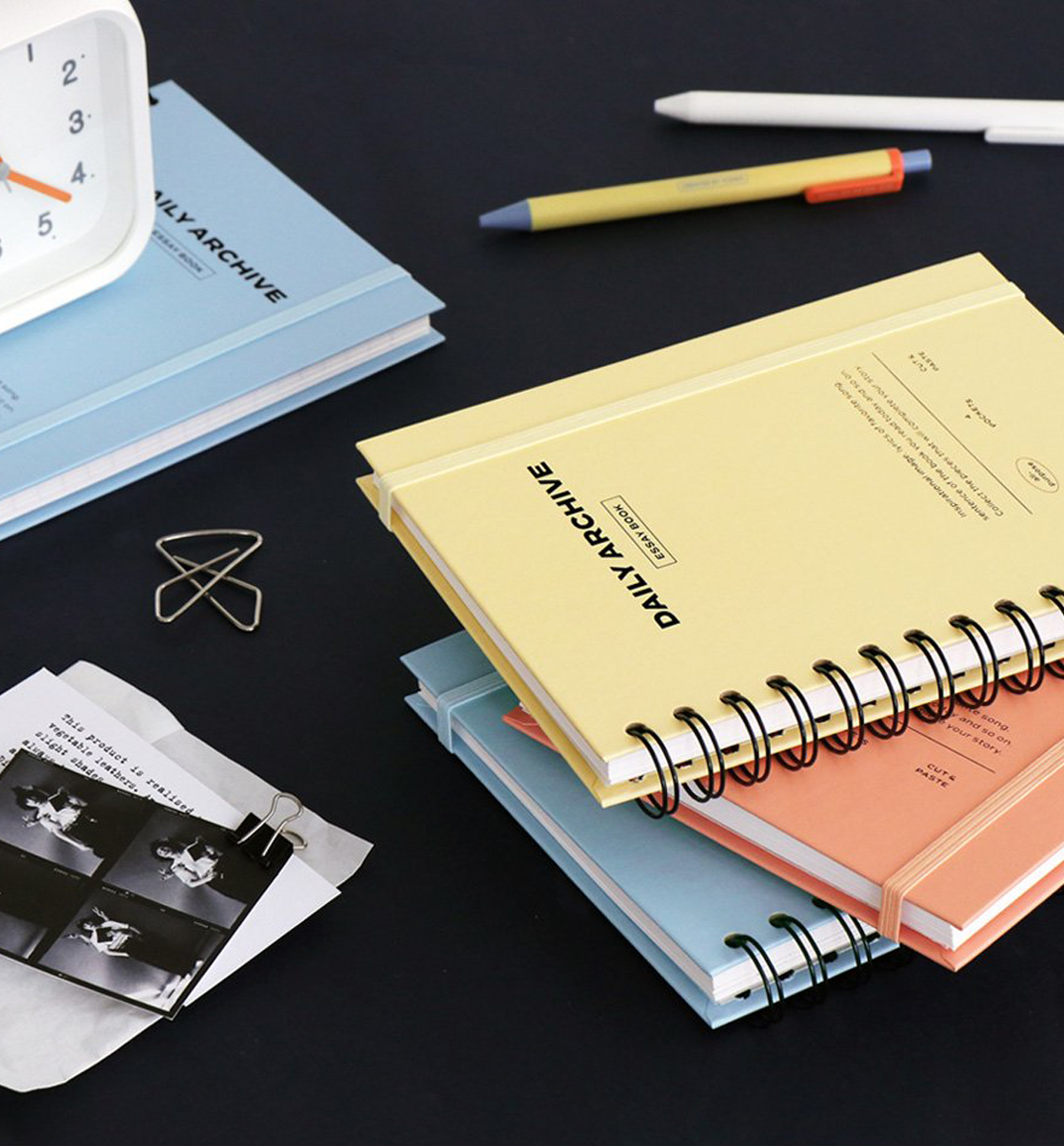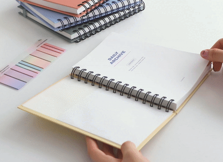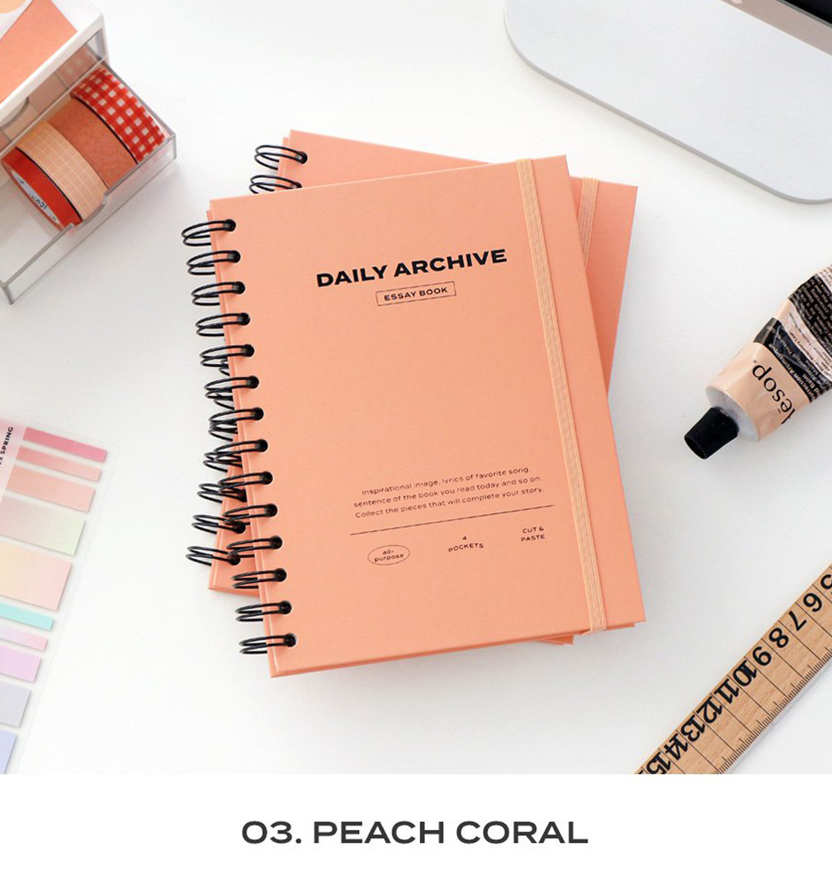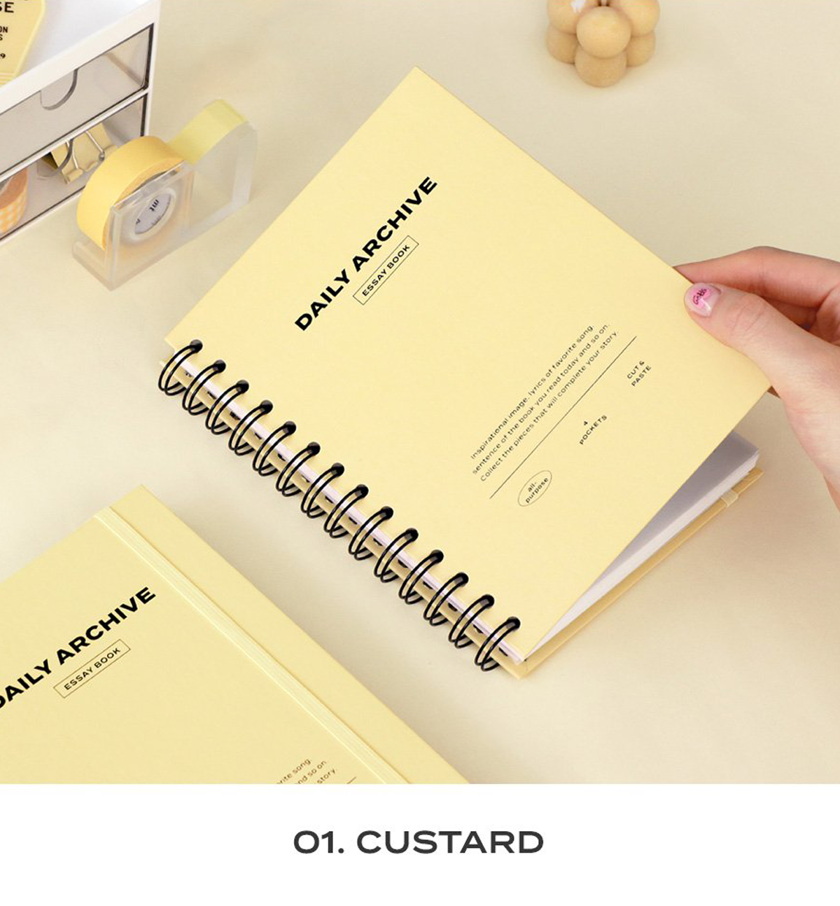 This Daily Archiving Book comes in 4 different colors: 01. Custard, 02. Powder Blue, 03. Peach Coral and 04. Sage Green. Ring binding.