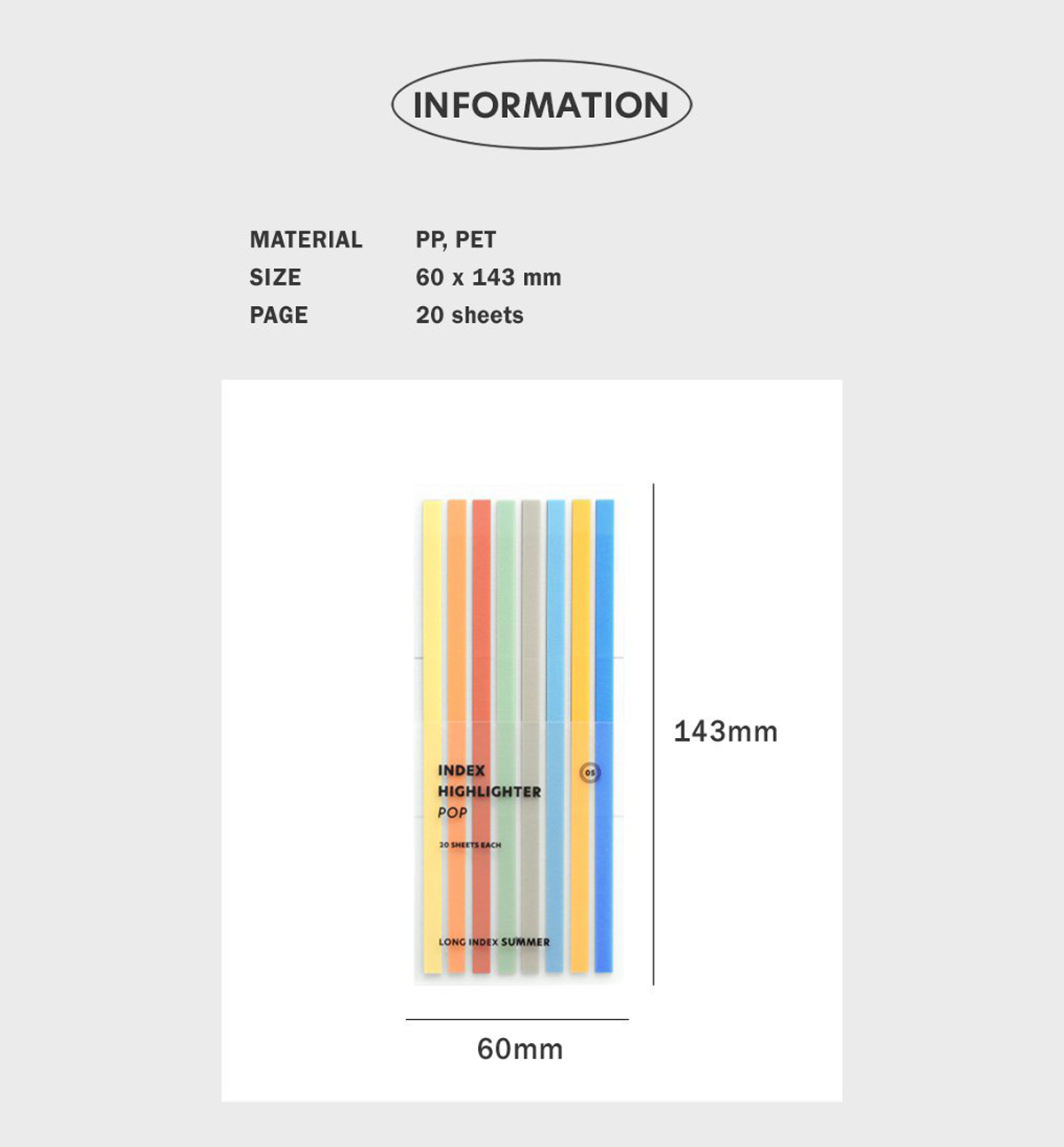 - Quantity: 1 Index Highlighter Pop [Long] | 20 sheets each