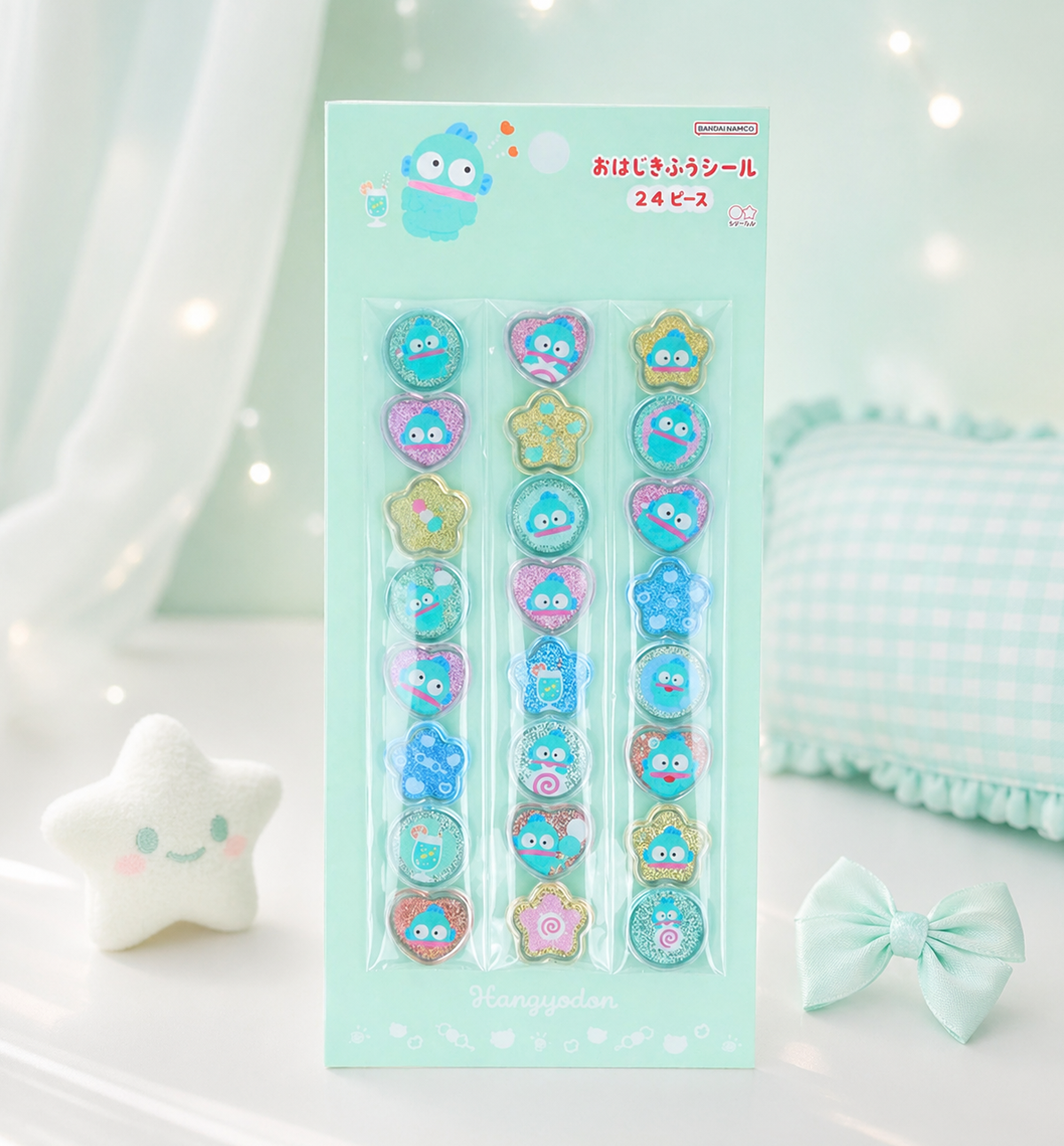 Add a playful, glossy touch to your stationery with these Sanrio Hangyodon Ohajiki Style Stickers. Inspired by traditional Japanese ohajiki (glass tokens), each sticker features a slightly raised, smooth finish that gives your decorations a unique dimensional look.