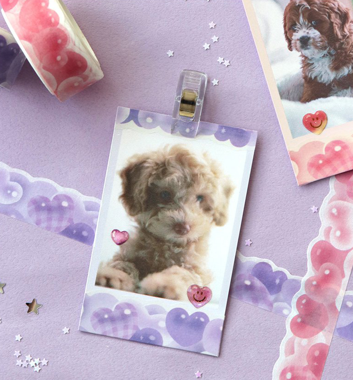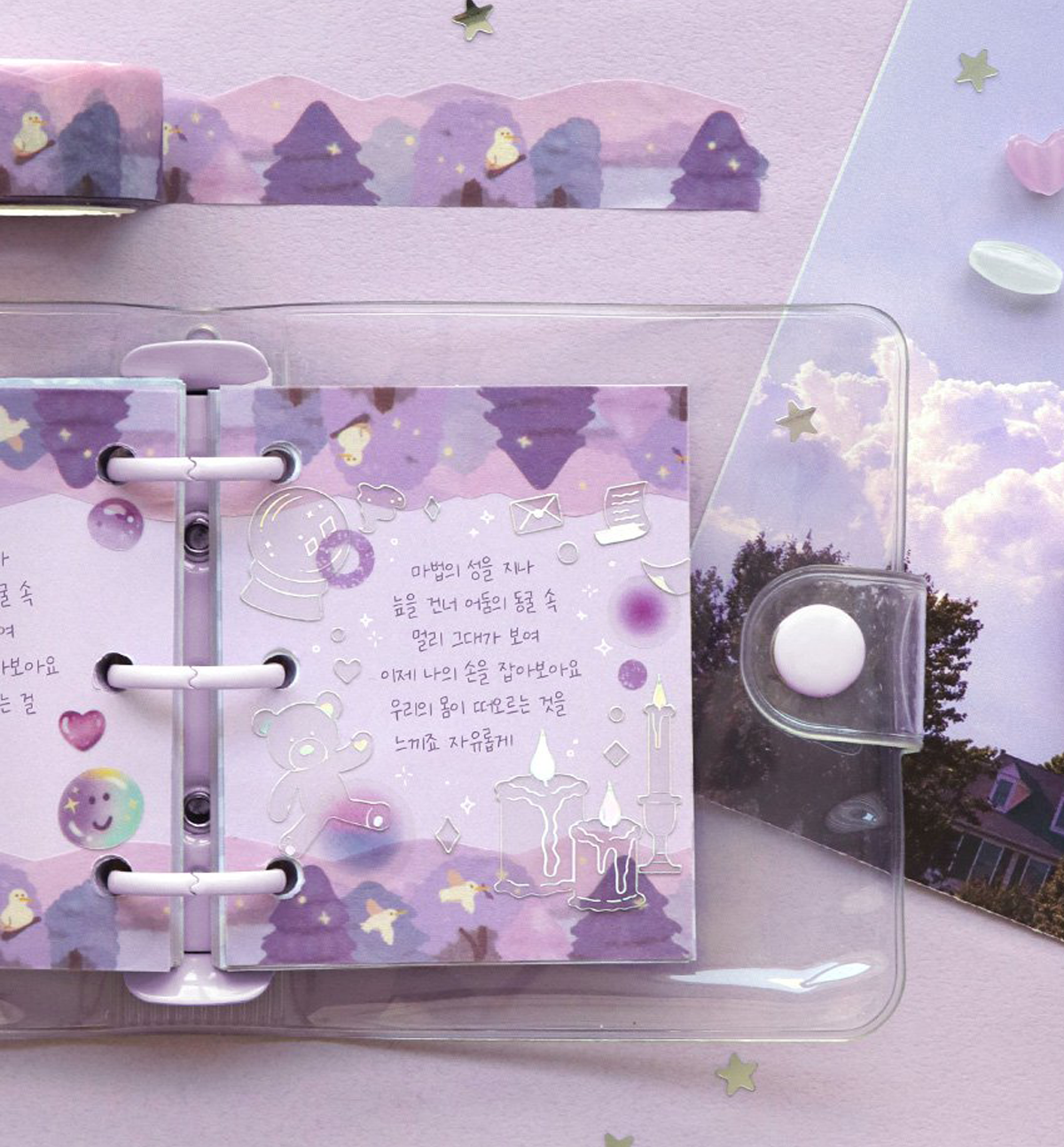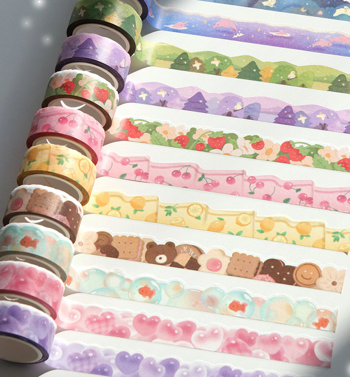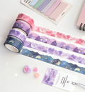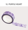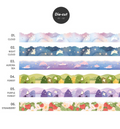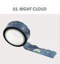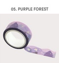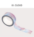 This beautiful Sugar Die-Cut Washi Tape comes in 12 different pattern colors: 01. Cloud, 02. Night Cloud, 03. Aurora Sea, 04. Forest, 05. Purple Forest, 06. Strawberry, 07. Cherry Fabric, 08. Lemon Fabric, 09 Cookie, 10. Bubble, 11. Pink Heart and 12. Purple Heart.