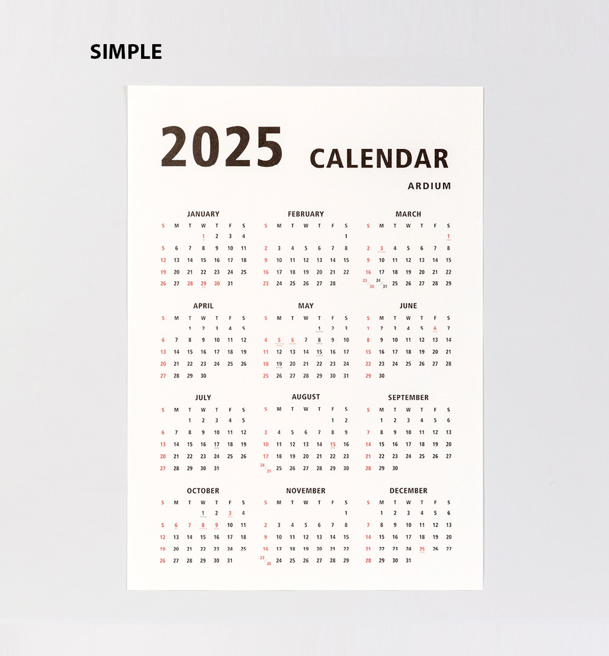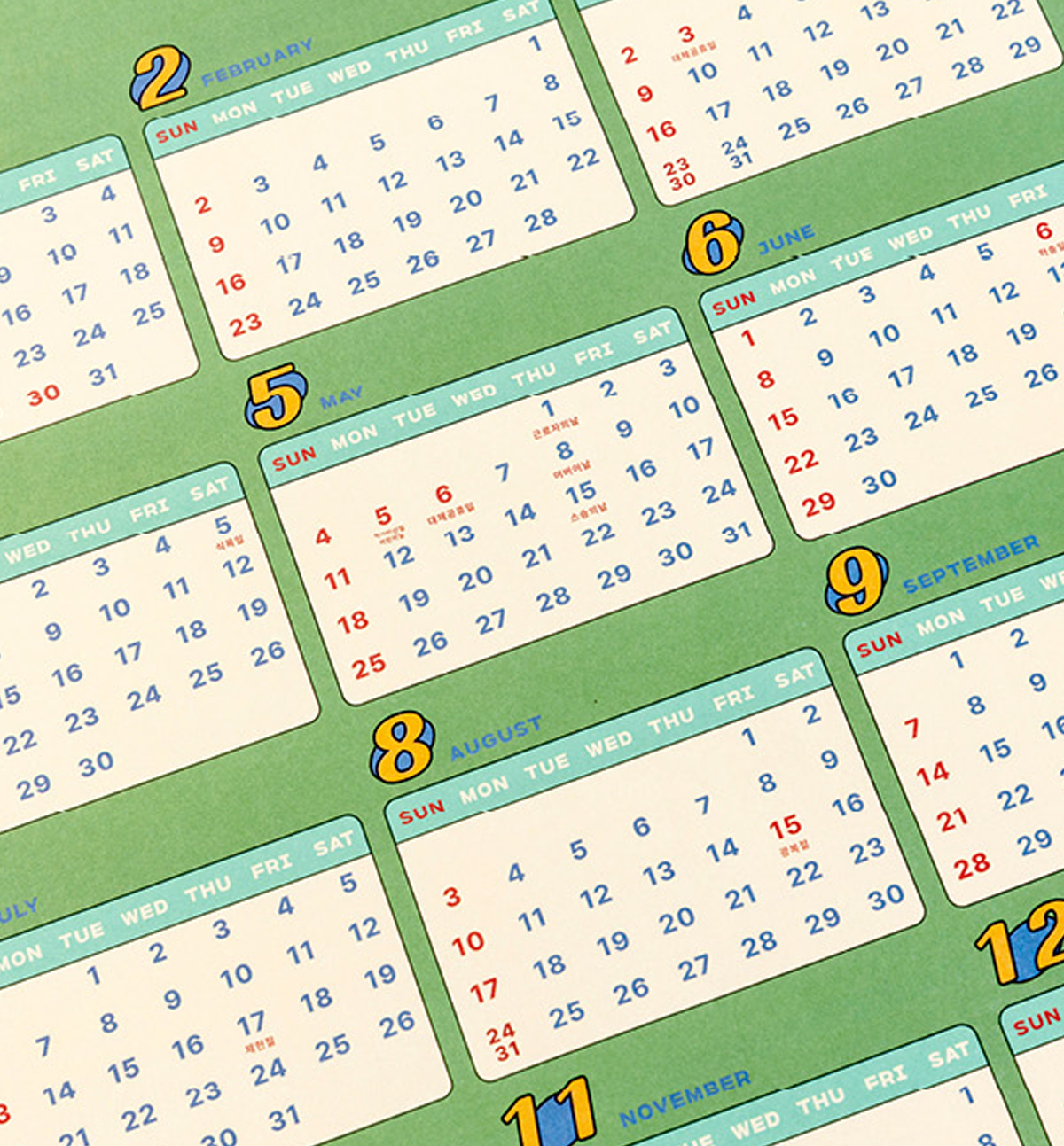 *Korean holidays are pre-marked throughout the calendar’s dated pages. But you can always add your personal holidays.