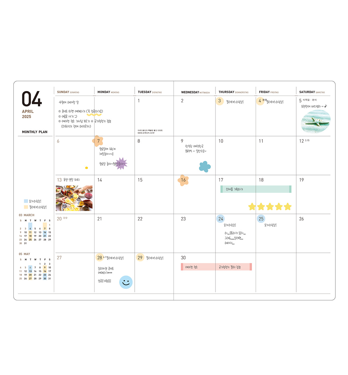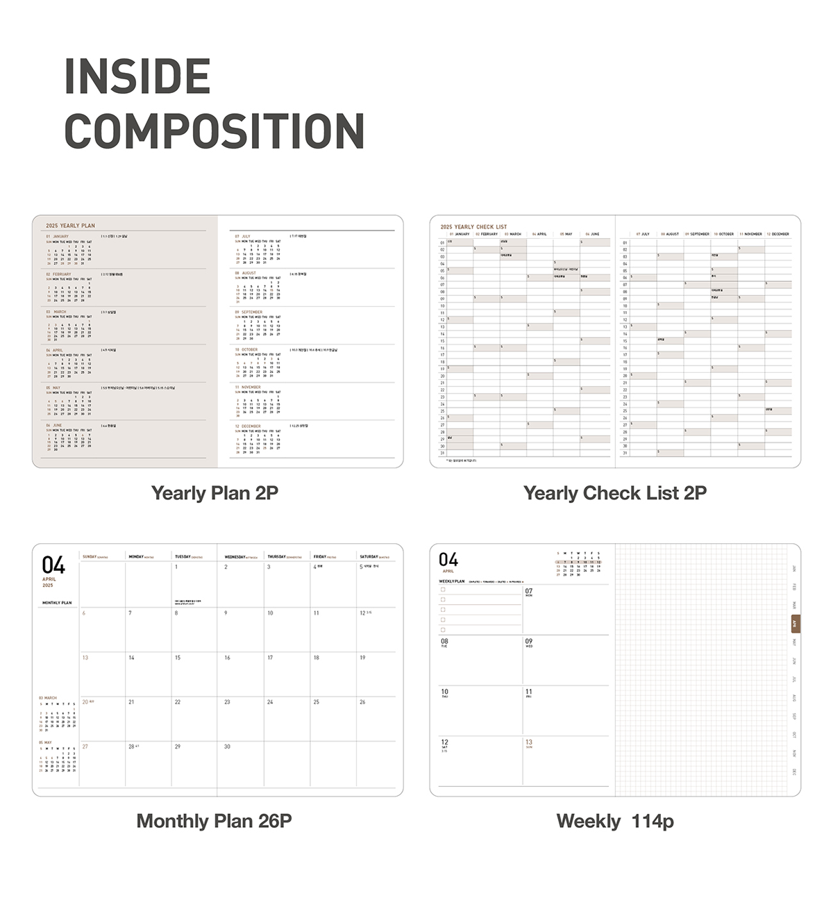 *Korean holidays are pre-marked throughout the calendar’s dated pages. But you can always add your personal holidays.