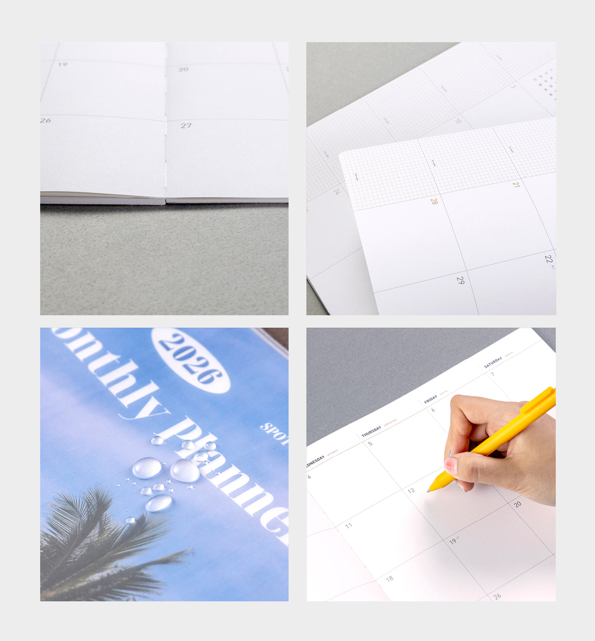 Stay organized in style with this thoughtfully designed planner. Featuring a 180° lay-flat, four-strand binding method, it opens smoothly for easy writing. The 180g thick inner paper prevents ink bleed-through, while the translucent PVC cover protects against dirt and everyday wear. Its spacious, compartment-style layout gives you plenty of room to plan, jot notes, and keep your schedule clear at a glance.