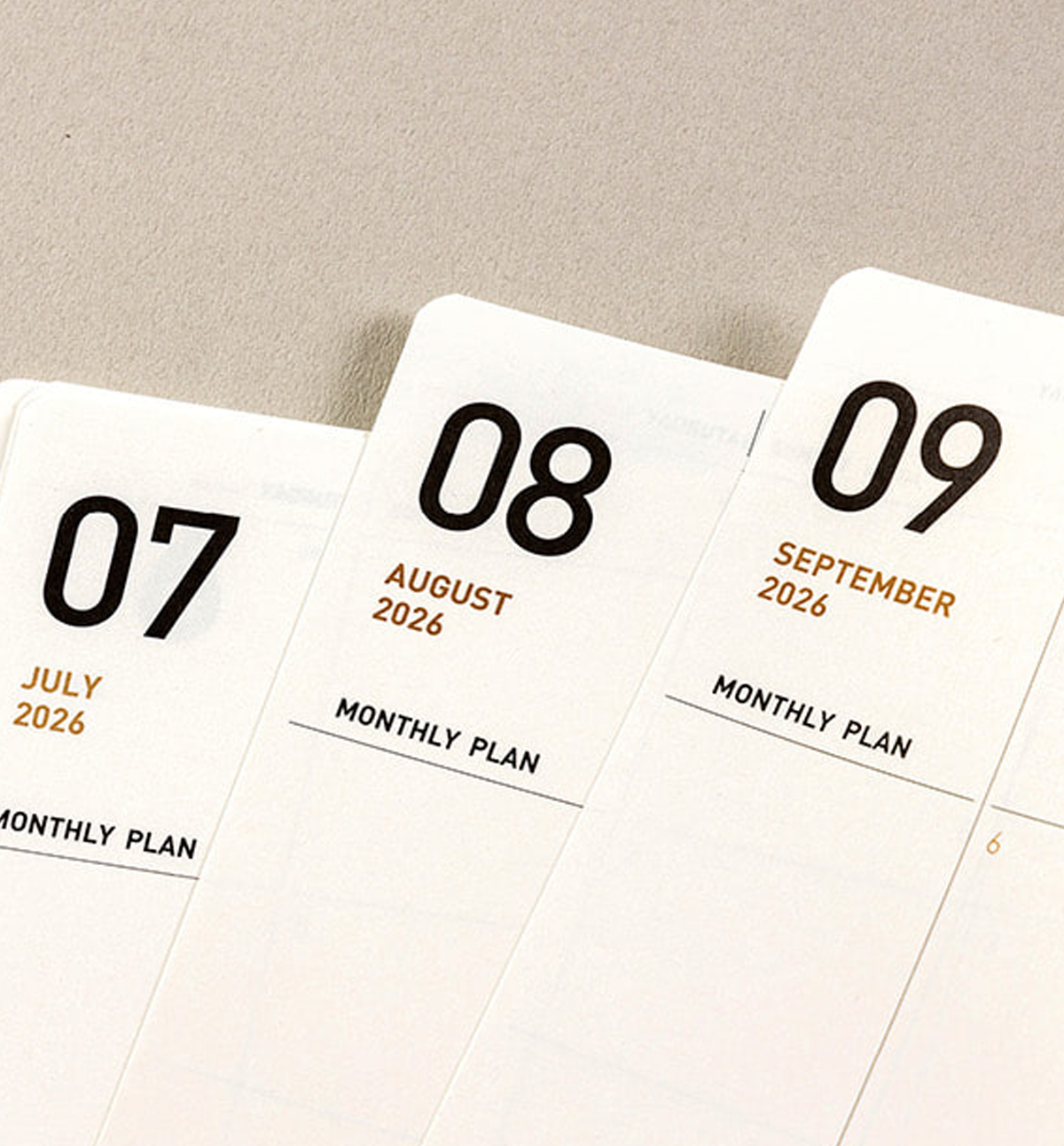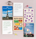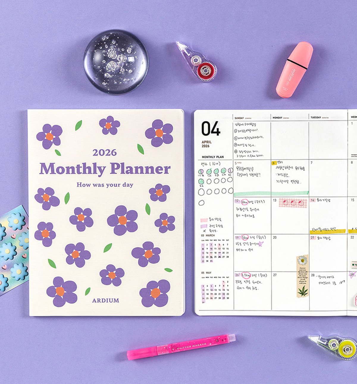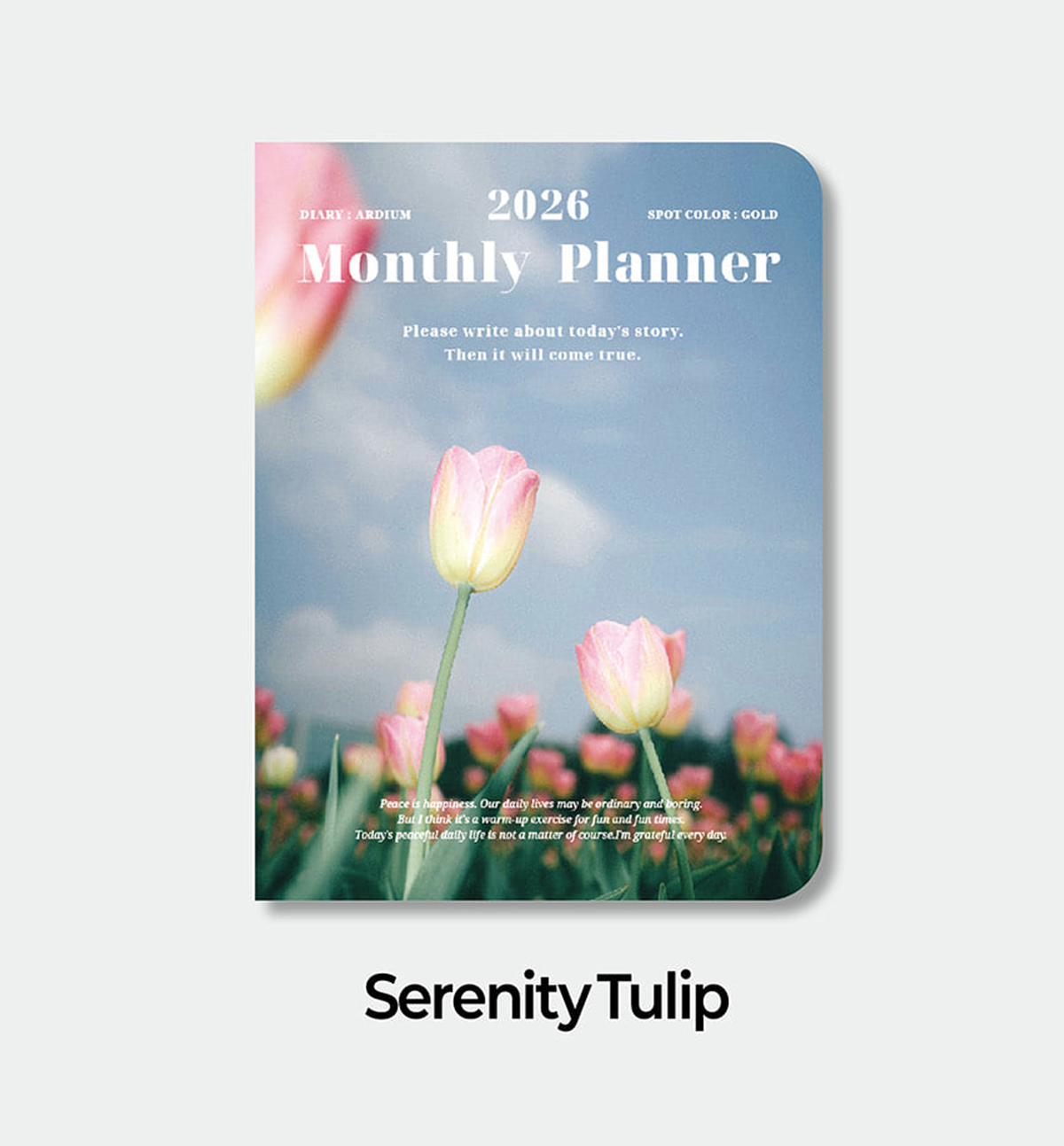 The 2026 Ardium Monthly Planner [L] is available in 6 beautiful cover designs. It features a flat-lay design for comfortable writing, durable sewn binding, and a protective PVC cover. Stylish, practical, and perfect for planning your year ahead.