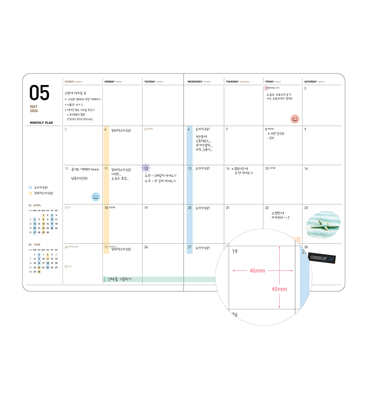 *Korean holidays are pre-marked throughout the calendar’s dated pages. But you can always add your personal holidays.
