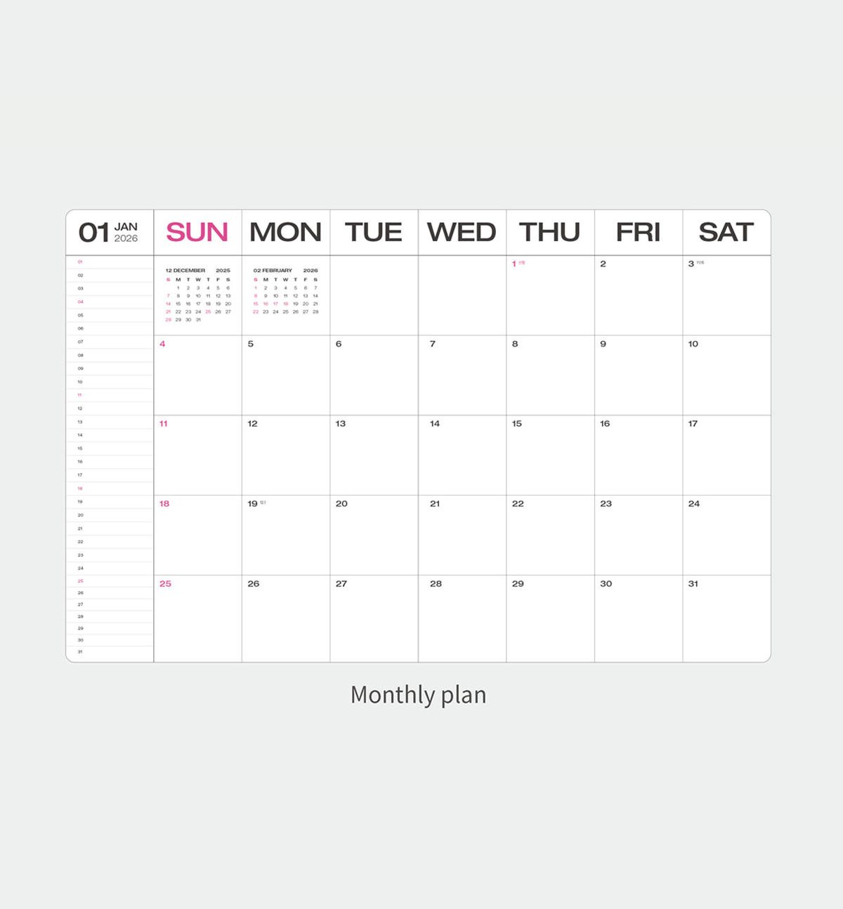 - Monthly Plan: 26 pages [From December 2025 - December 2026 | 13 months]