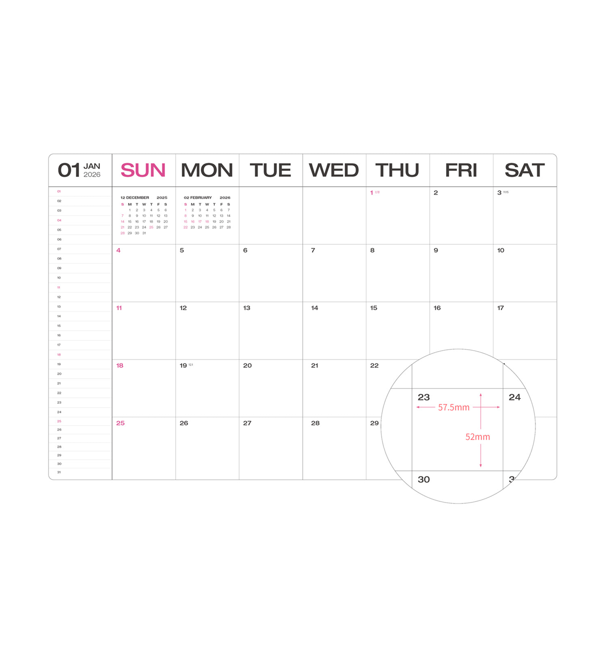 *Korean holidays are pre-marked throughout the calendar’s dated pages. But you can always add your personal holidays.