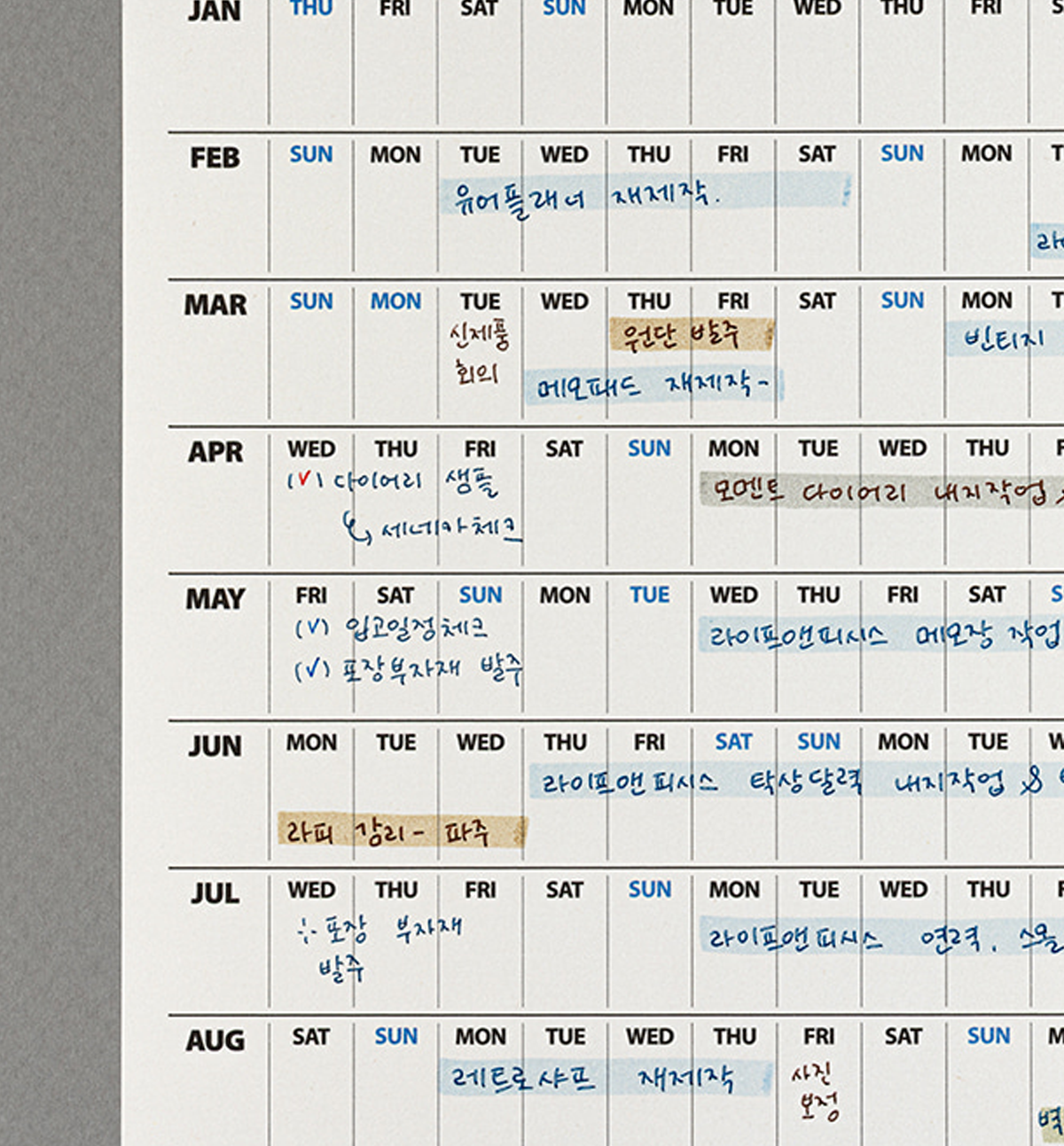 *Korean holidays are pre-marked throughout the calendar’s dated pages. But you can always add your personal holidays.