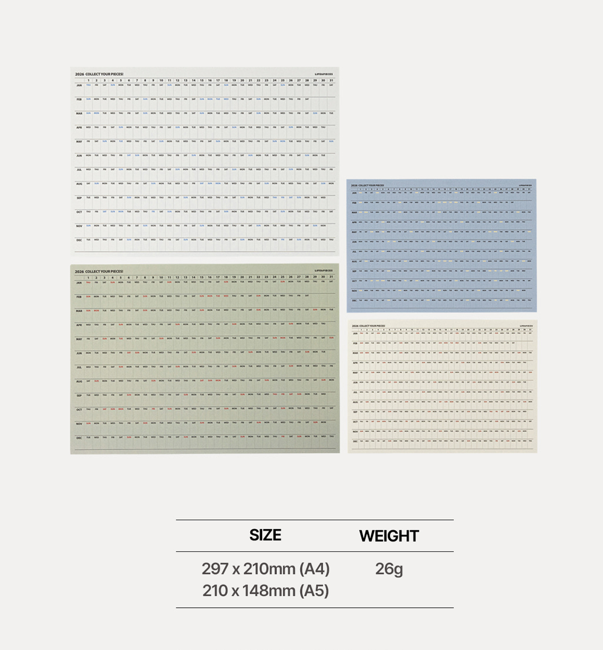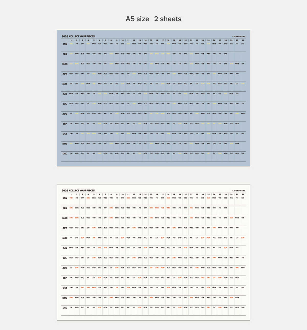 • Quantity: 1 2026 Life & Pieces Small Yearly Calendar Set