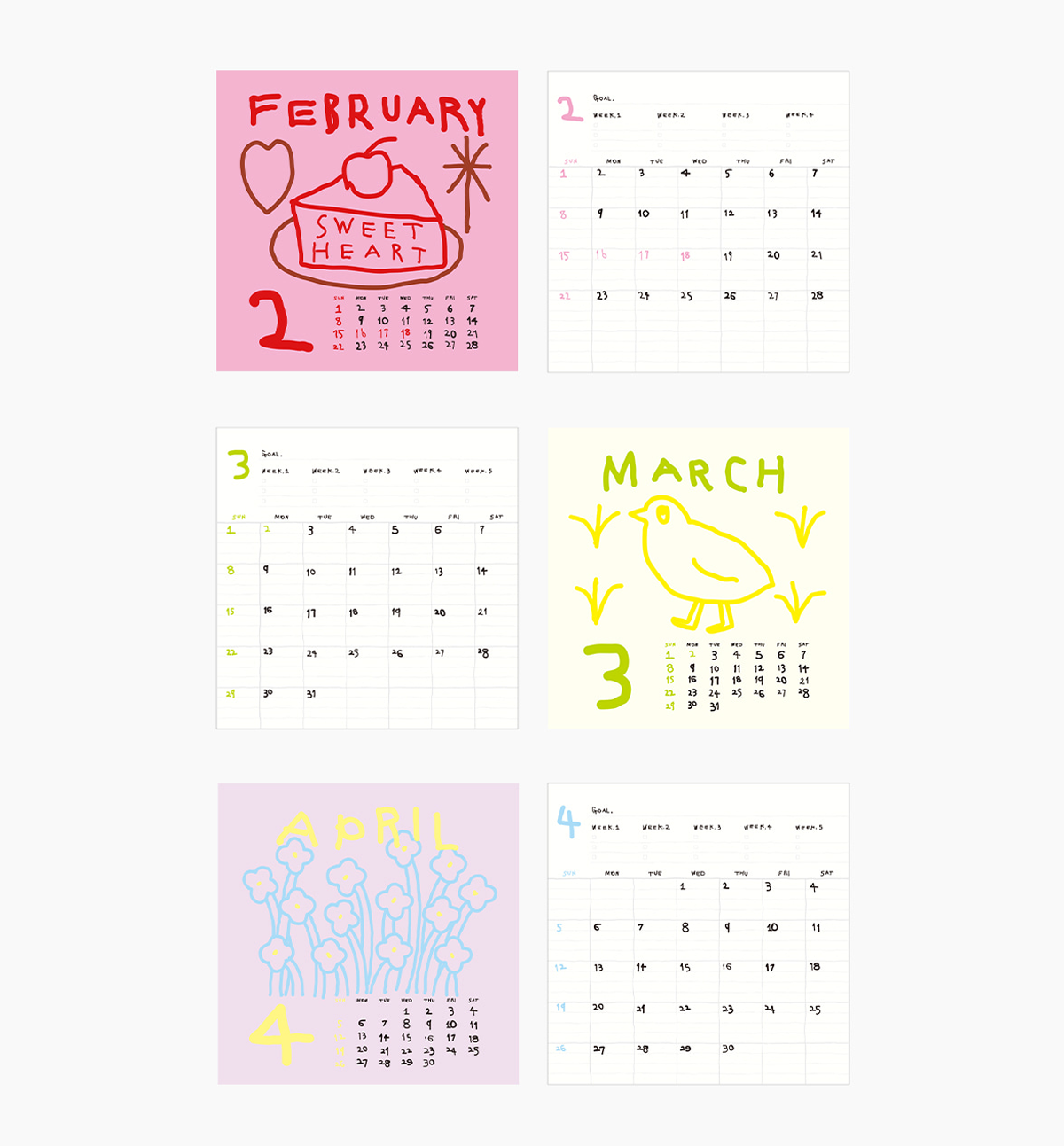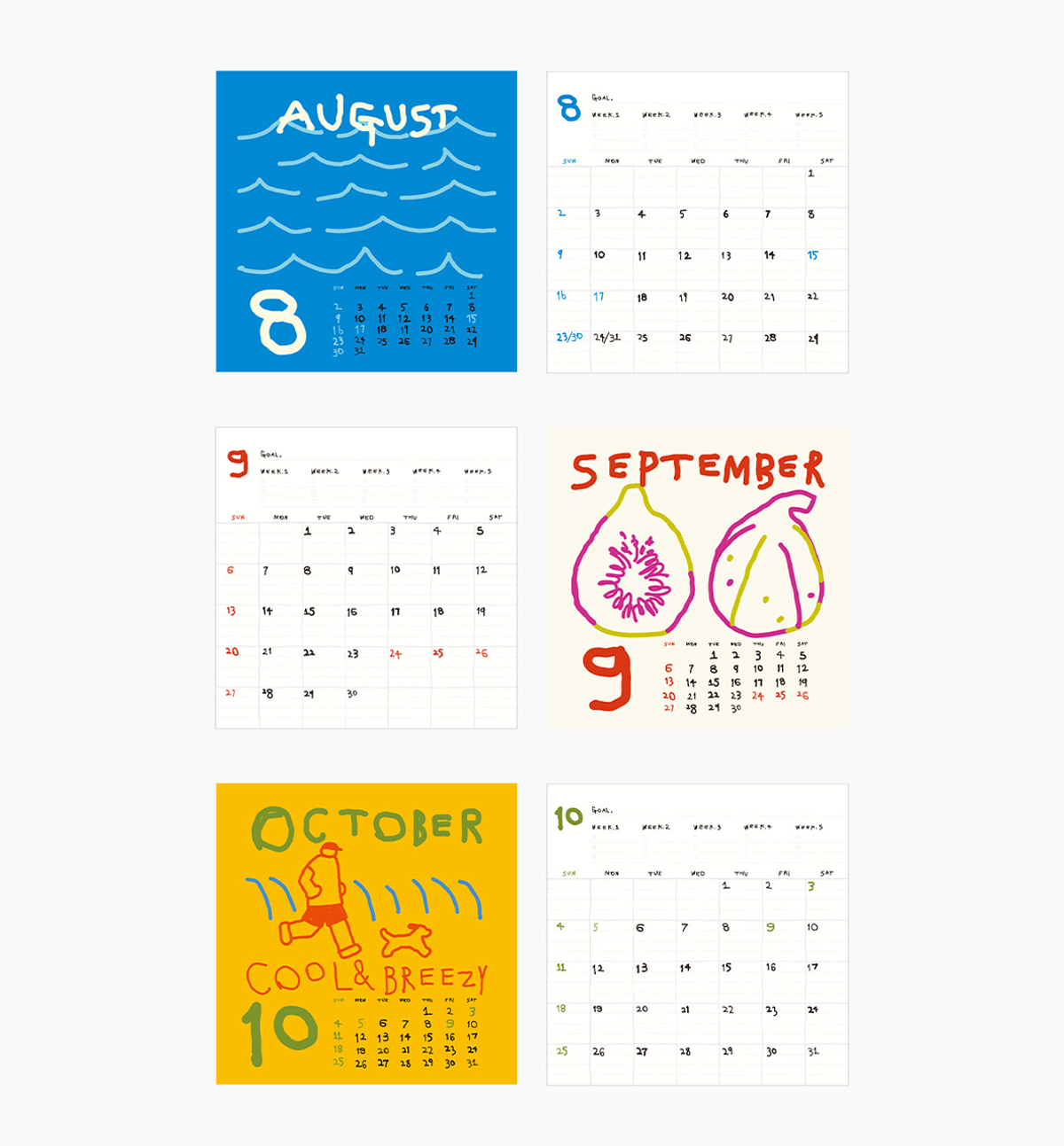 Start each month with new illustrations and colors, and let this calendar keep your year both organized and delightful.