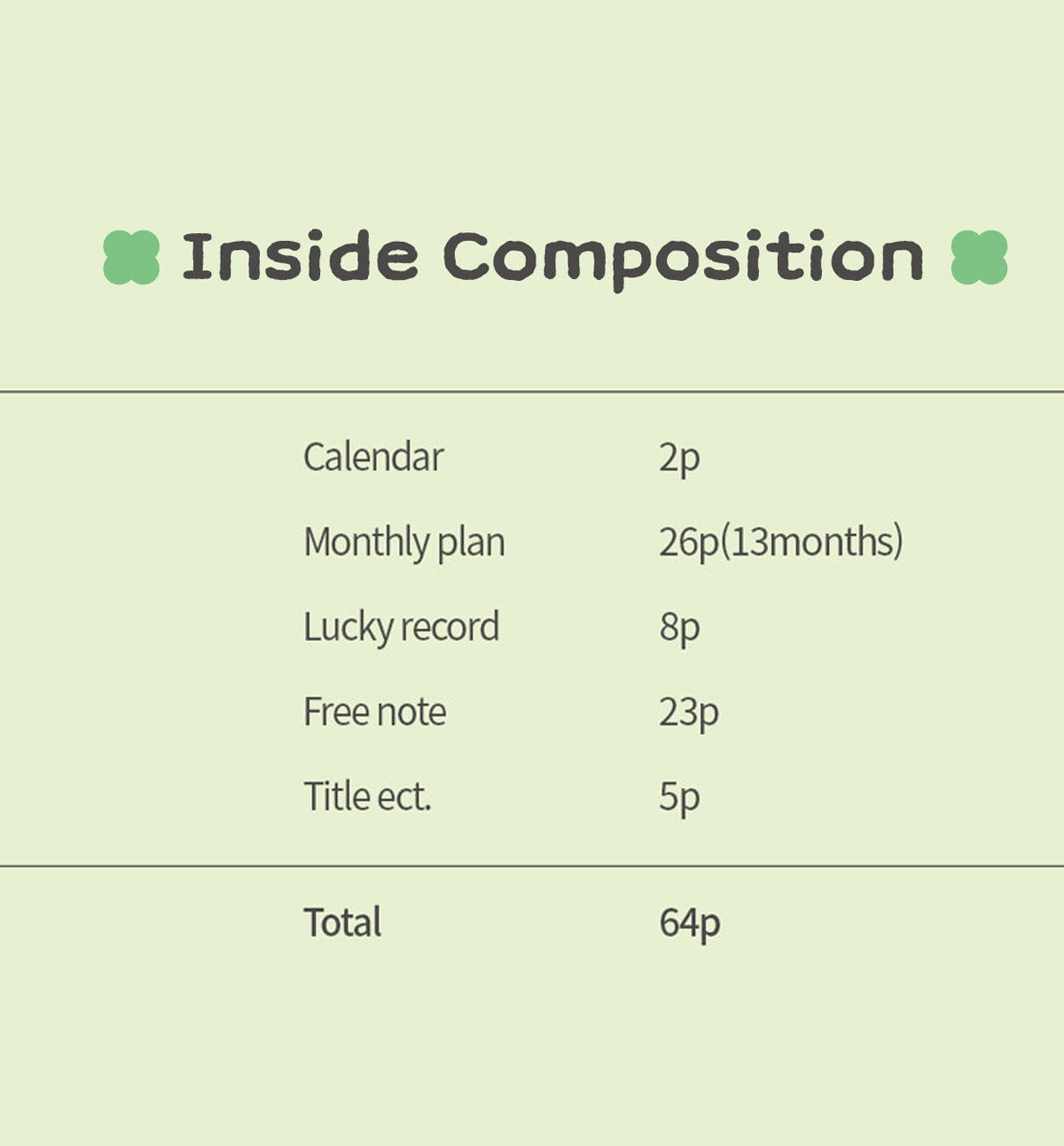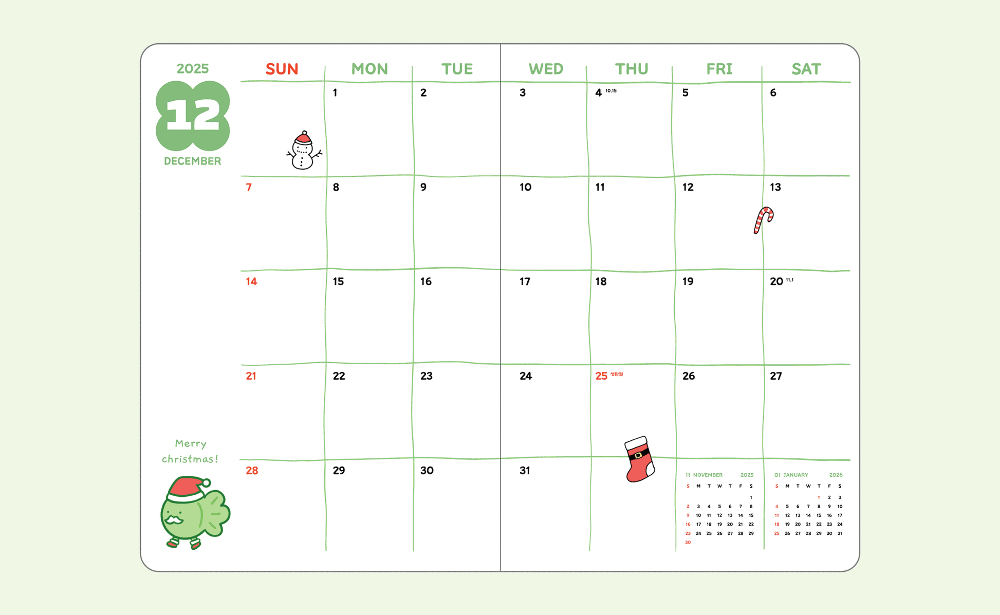 *Korean holidays are pre-marked throughout the calendar’s dated pages. But you can always add your personal holidays.