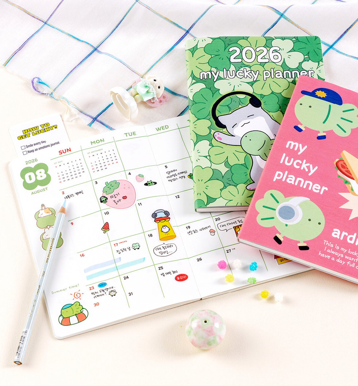 Plan, reflect, and dream! Use the “Luck Log” to jot down moments that made you happy, things that brought you luck, and wishes you hope to come true. Each entry gathers tiny bits of luck, turning this planner into your very own lucky talisman.